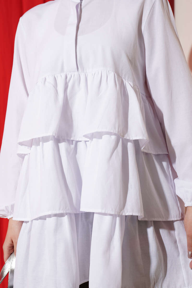 Yarım Düğmeli Katlı Tunik Beyaz