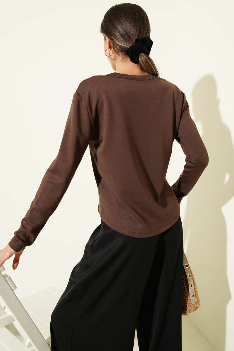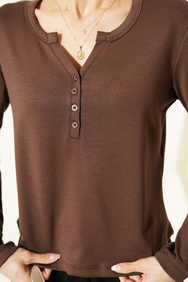 Yarım Düğmeli Loyşa Body Kahve