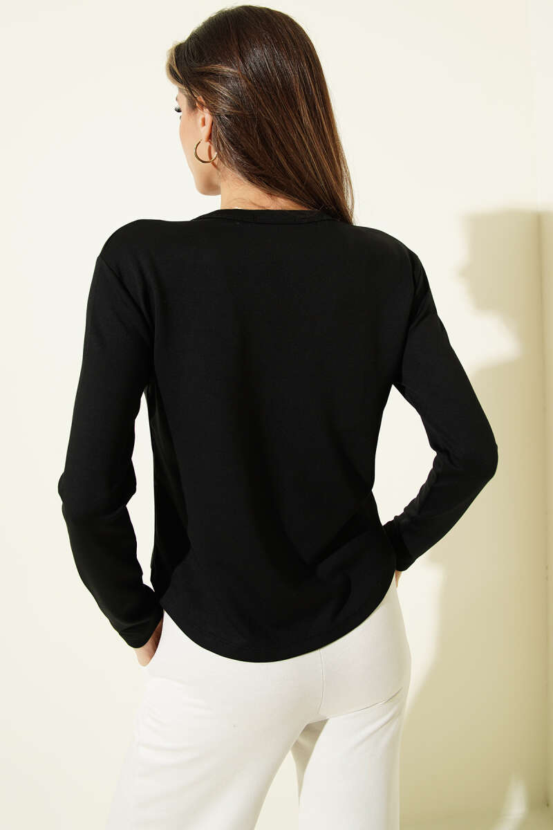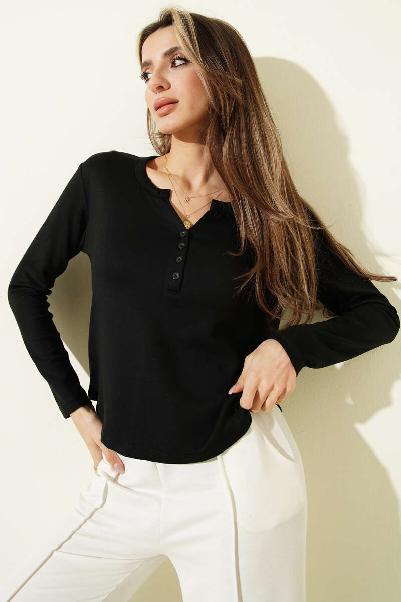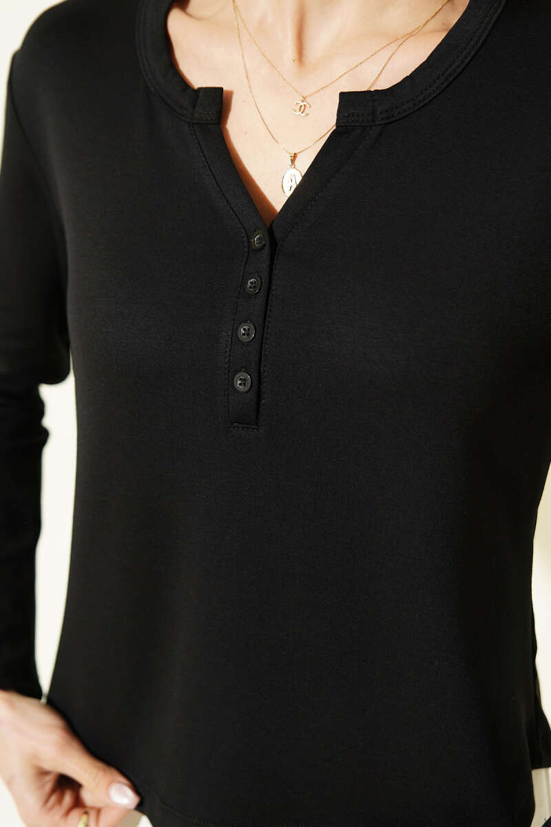 Yarım Düğmeli Loyşa Body Siyah