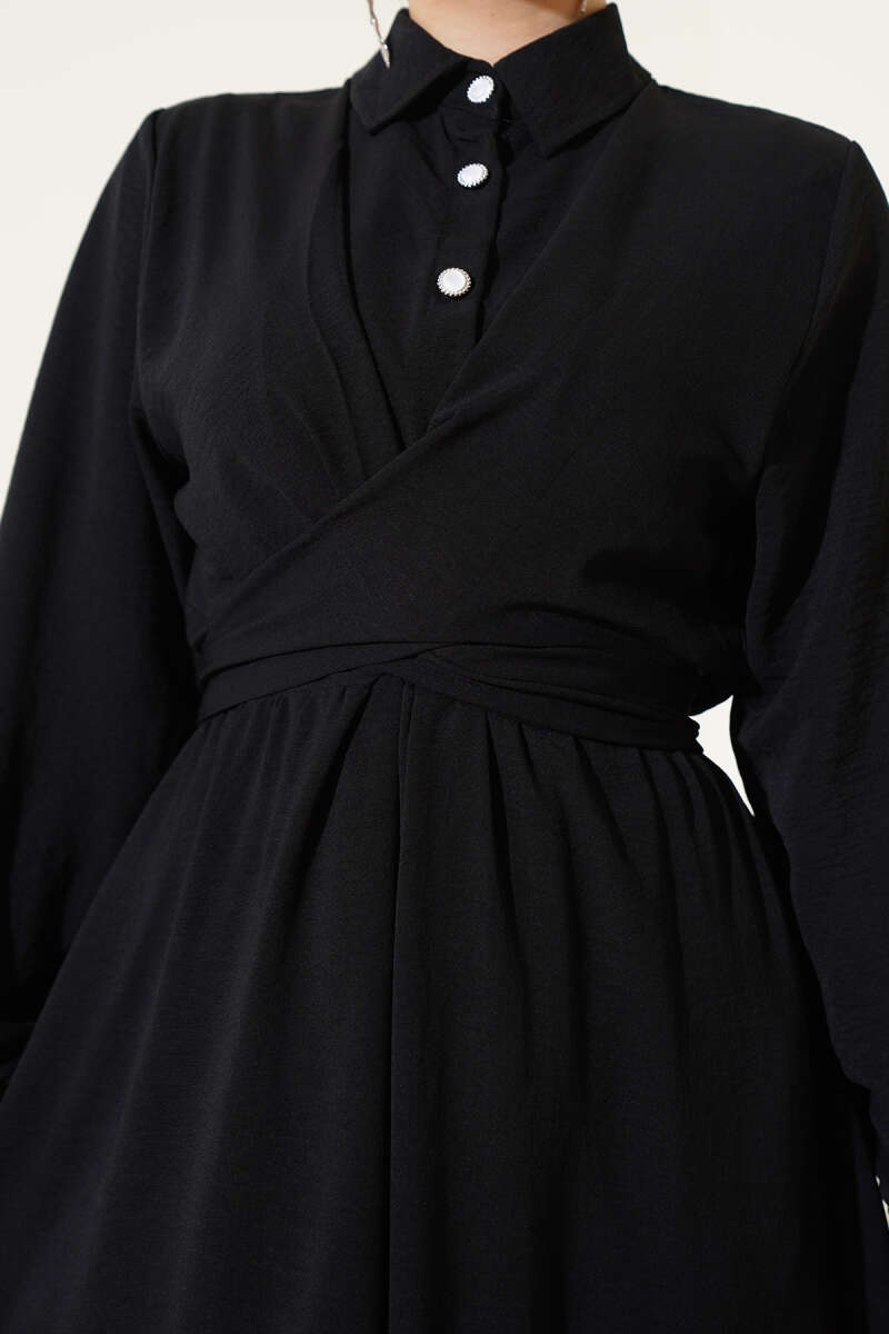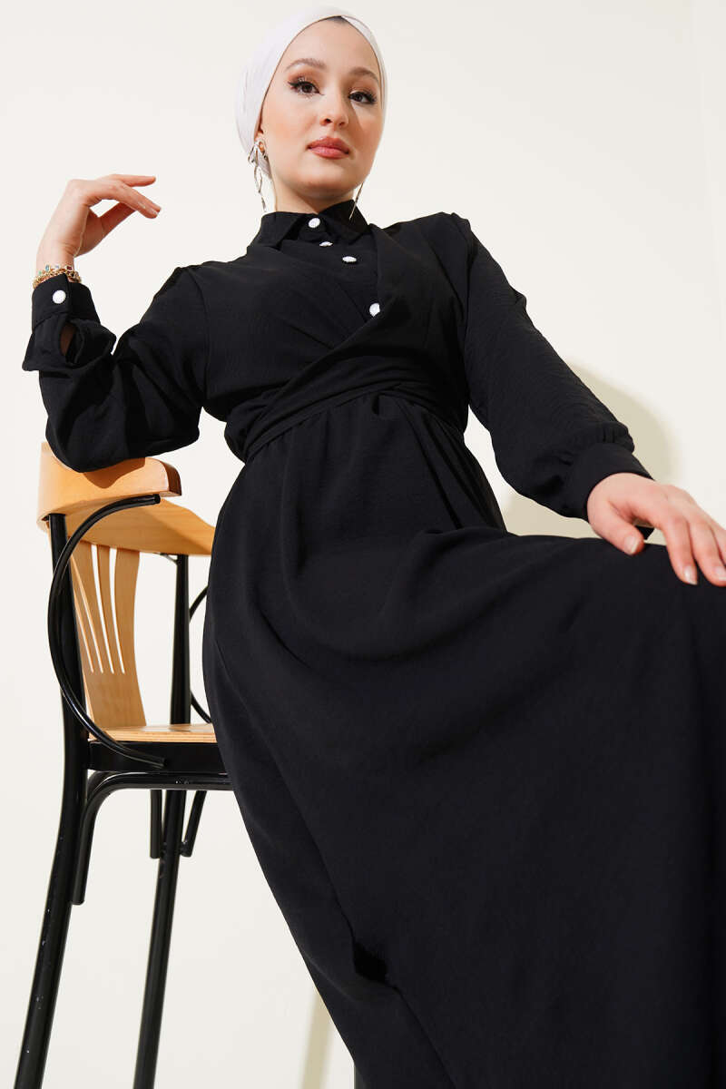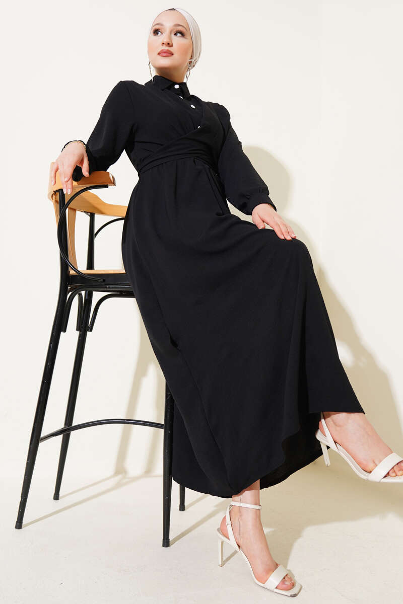 Bilek Bağlamalı Kuşaklı Abiye Elbise Siyah