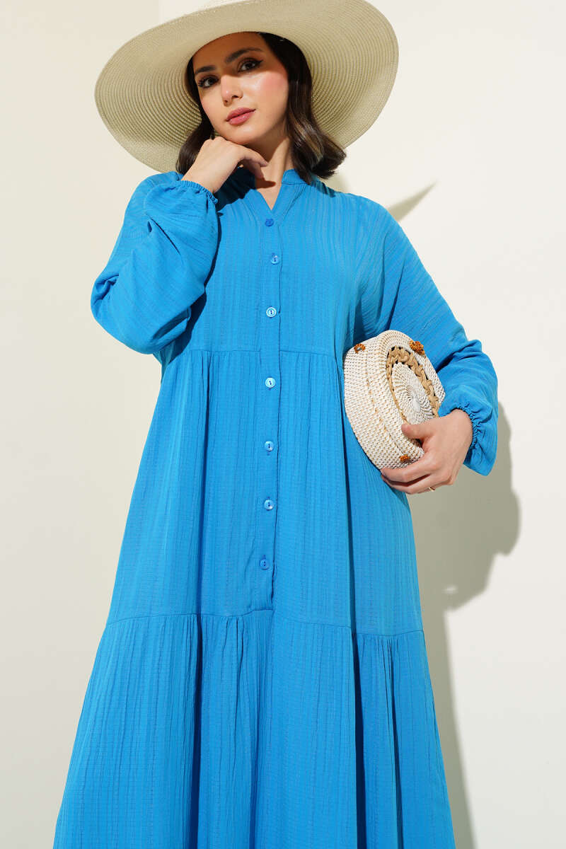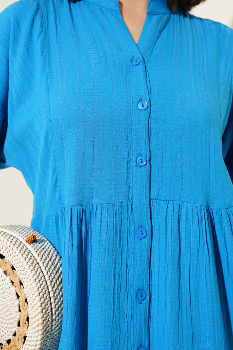 Gömlek Yaka Düğmeli Triko Elbise Nefti