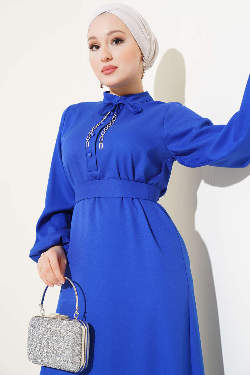 Kolları Fiyonk Detaylı Selanik Elbise Taş