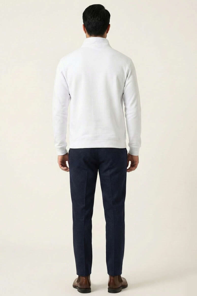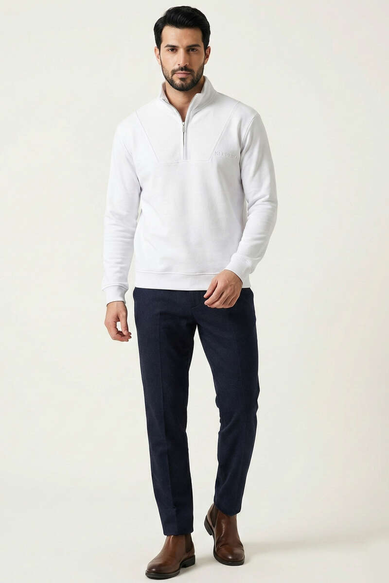 Yaka Düğmeli Biyeli Erkek Sweatshirt Beyaz