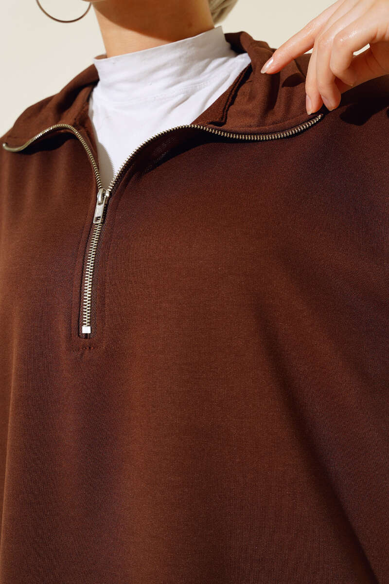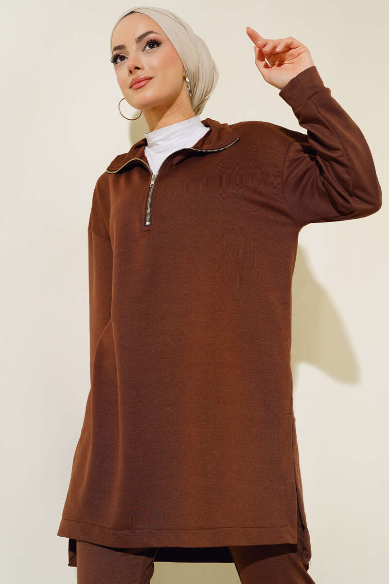 Yarım Fermuar İkili Takım Kahve