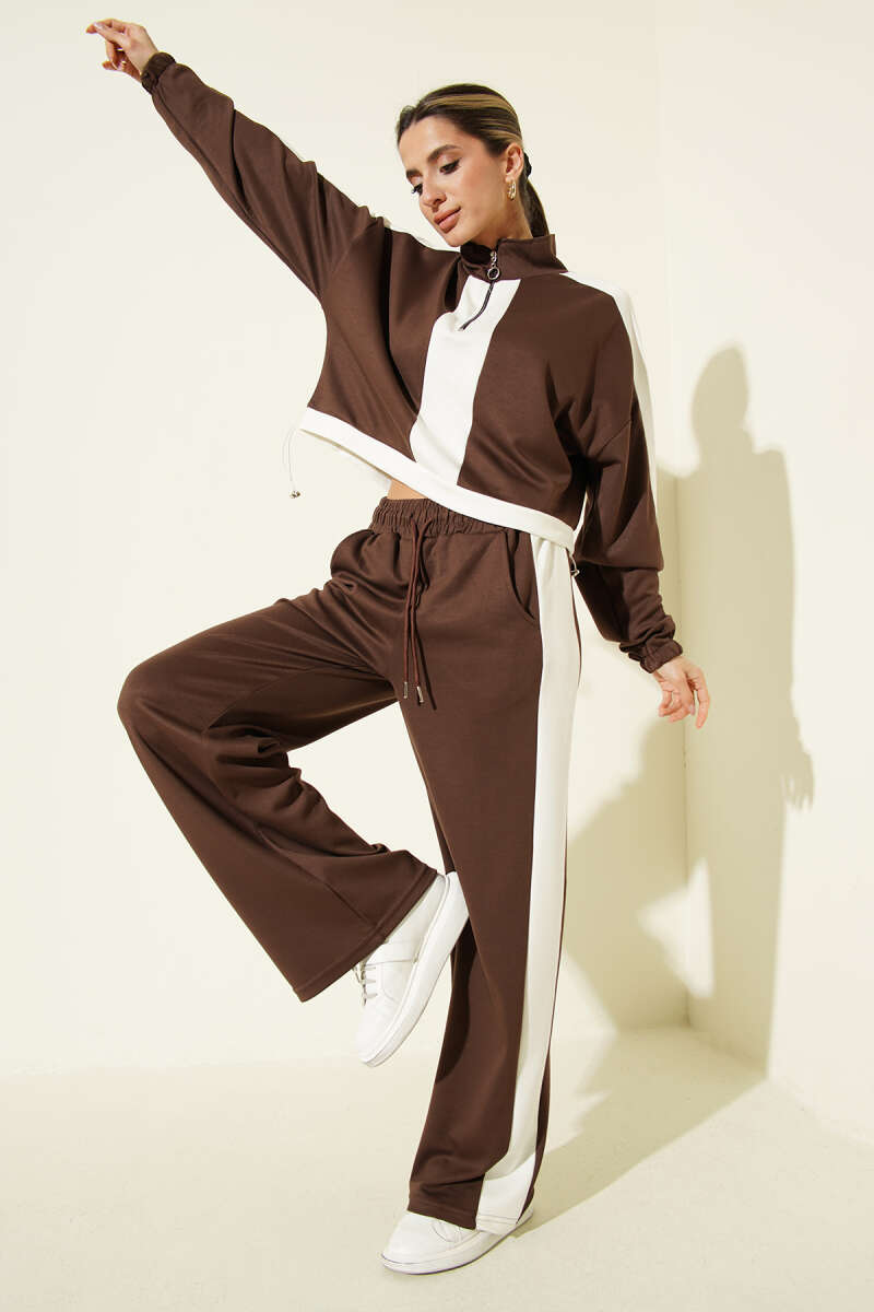 Yarım Fermuar Loyşa Sweat İkili Takım Kahve