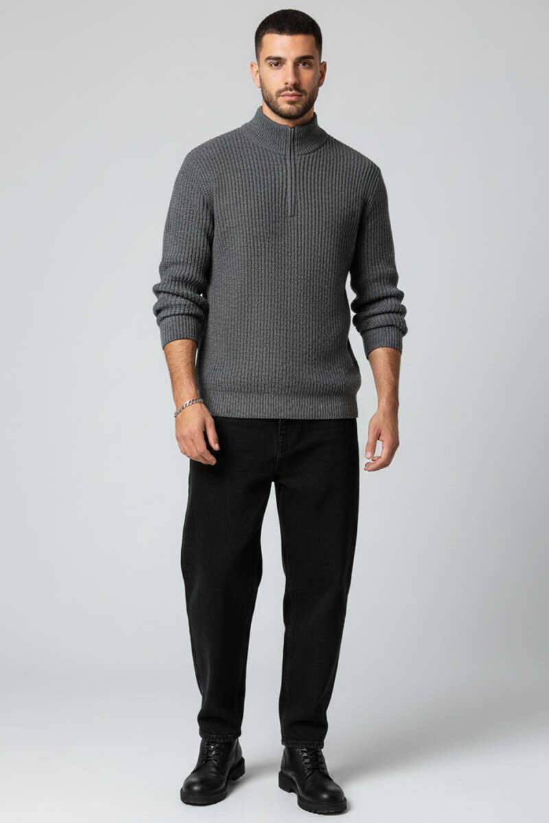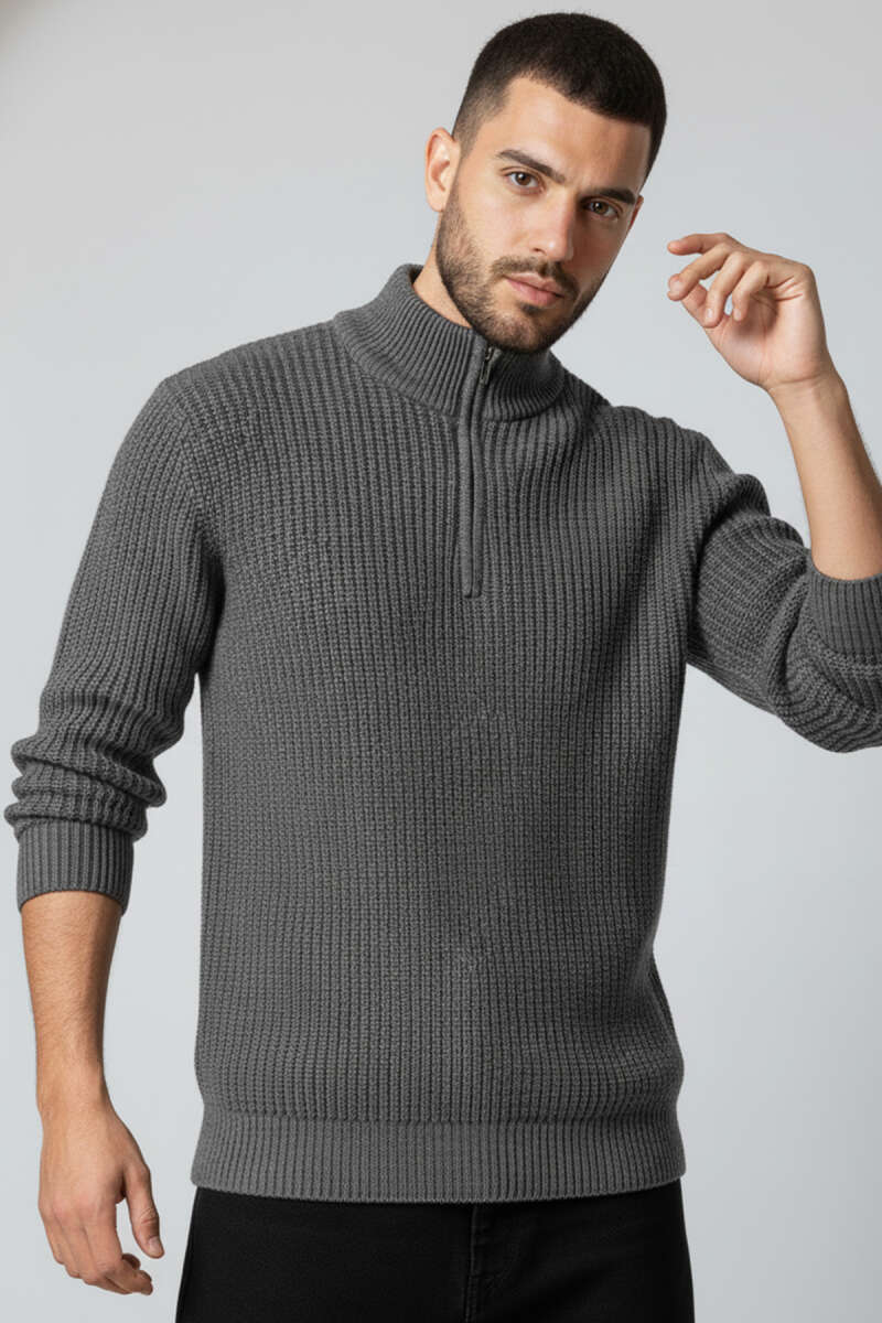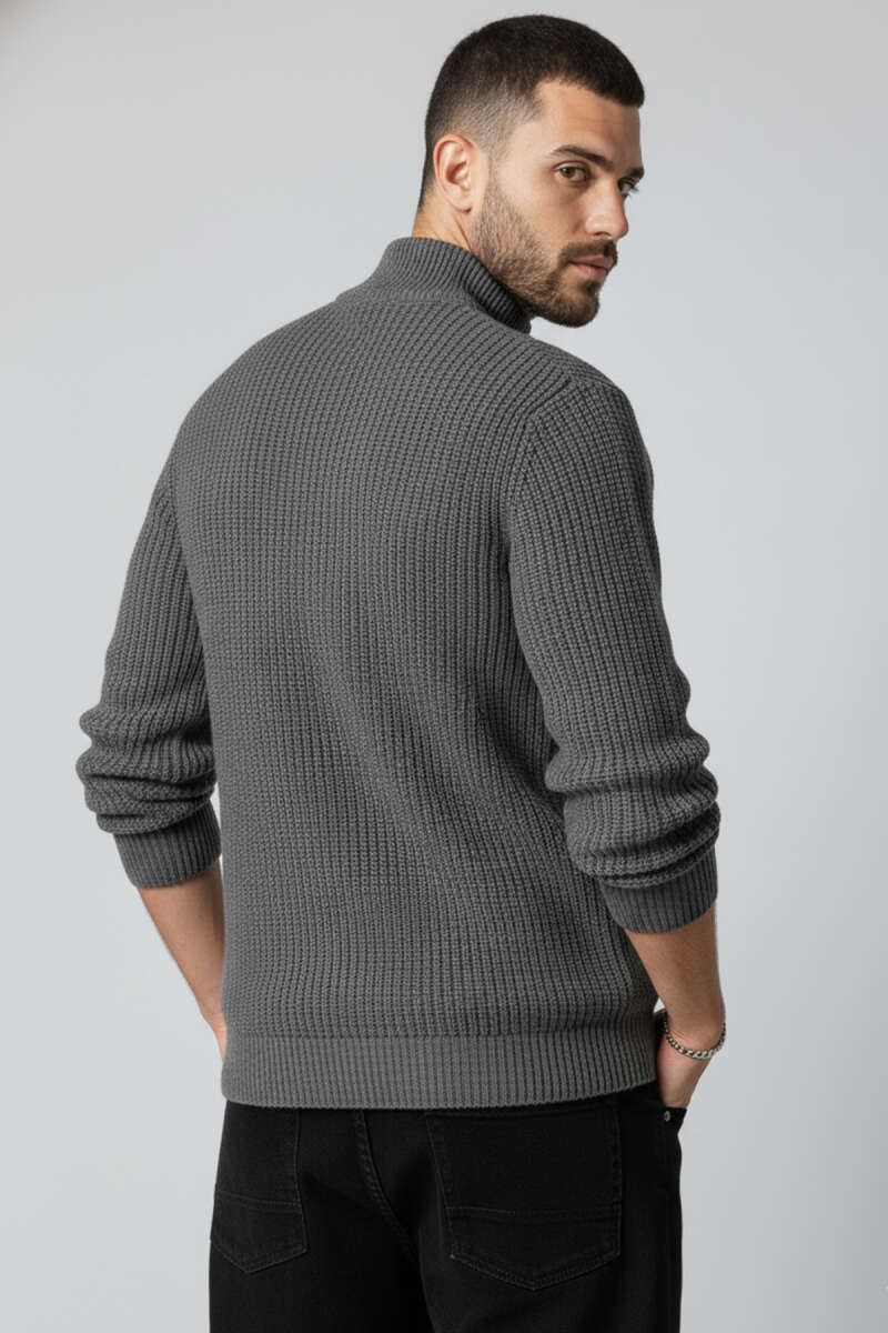 Yıldız Desen Triko Örme Erkek Kazak Antrasit