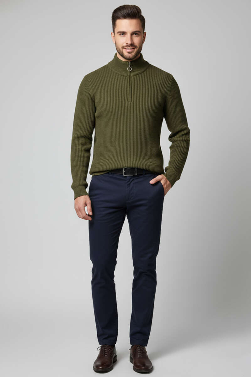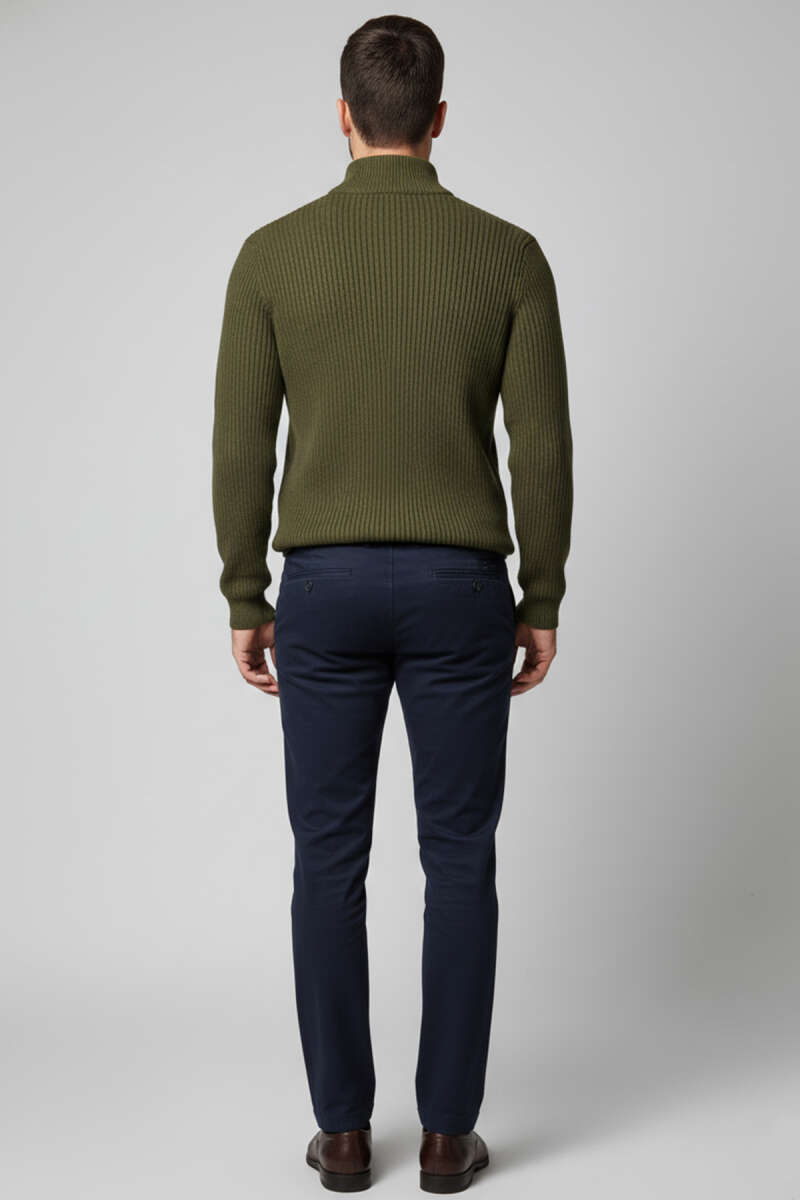 Çizgili Yarım Fermuar Erkek Triko Kazak İndigo