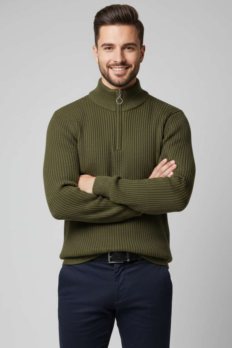 Yarım Fermuar Pirinç Örgü Erkek Kazak Bordo