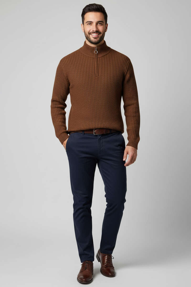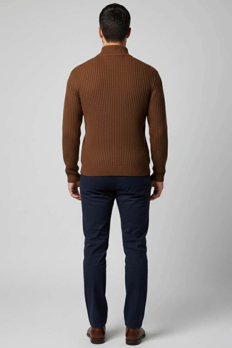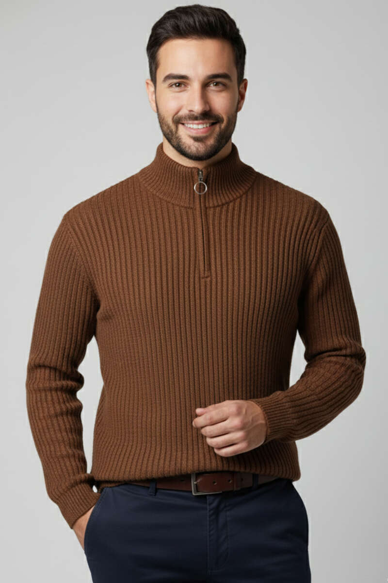 Çizgi Desen Örgü Triko Erkek Kazak Kahve