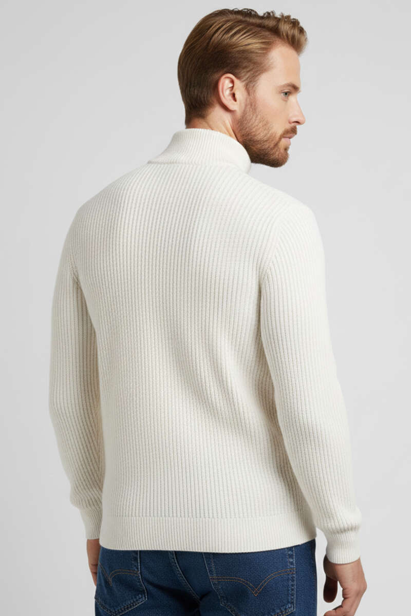 Yarım Balıkçı Yaka Fitilli Erkek Triko Kazak Beyaz