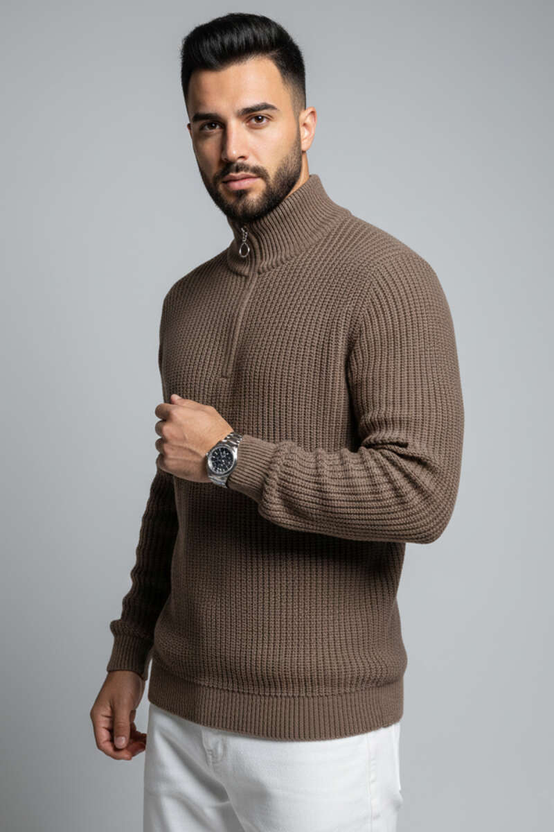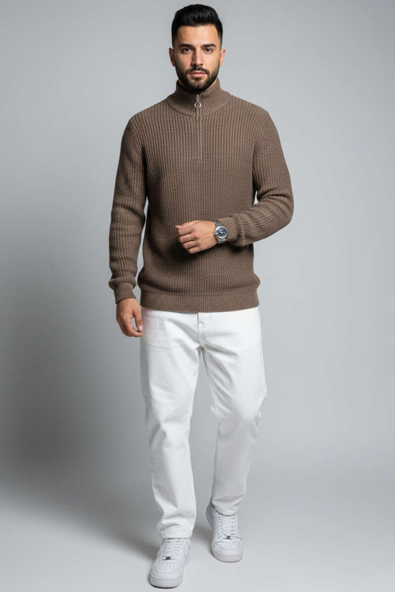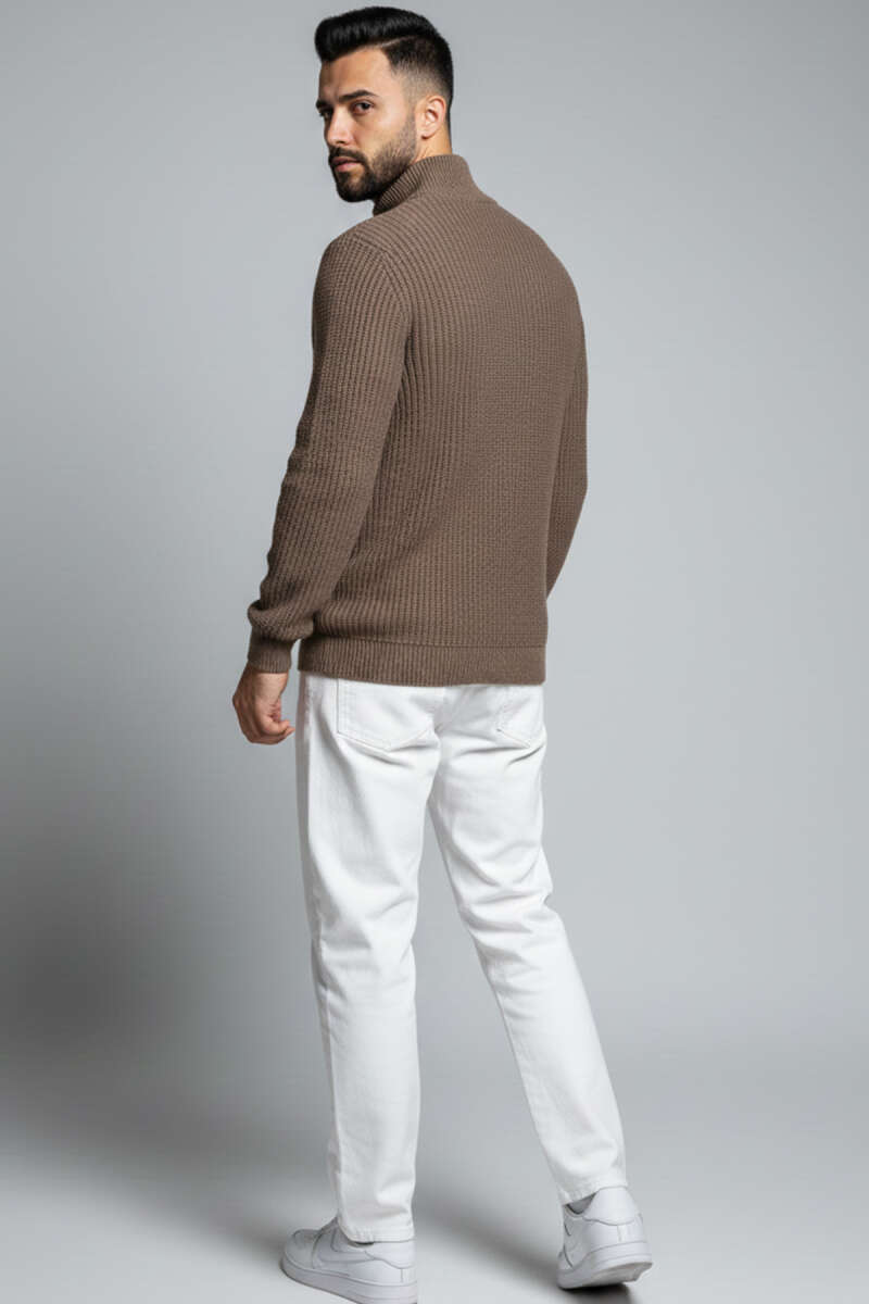 Çizgi Desen Örgü Triko Erkek Kazak Kahve
