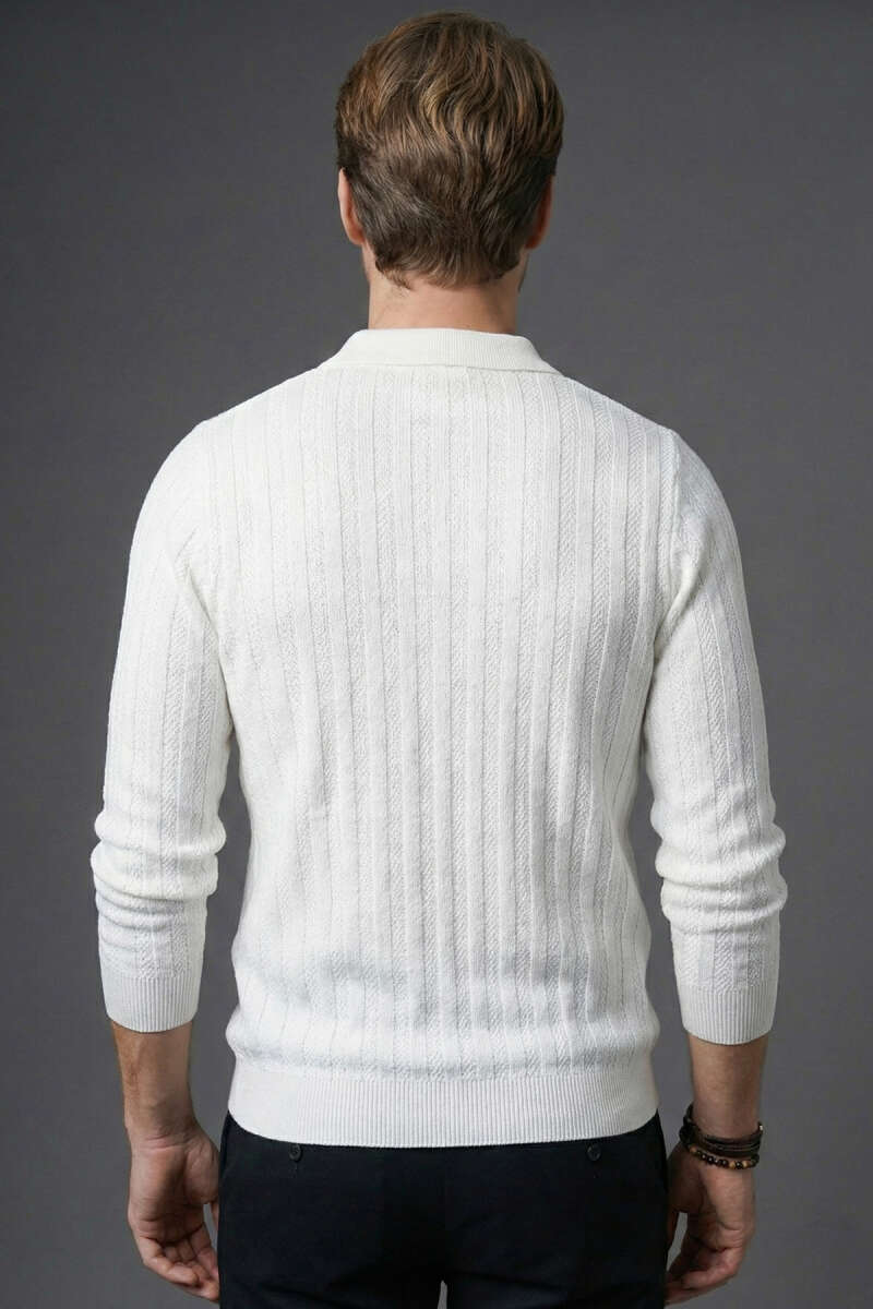 Waffle Kumaş Balıkçı Yaka Erkek Kazak Ekru