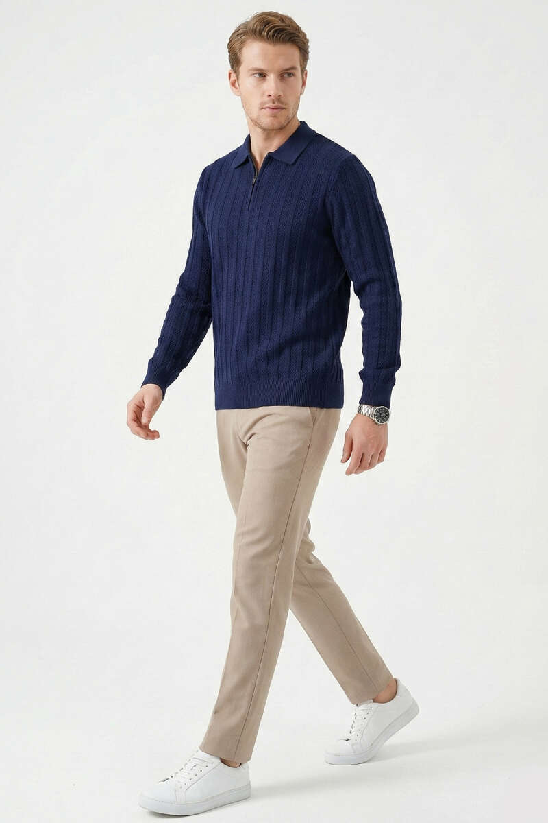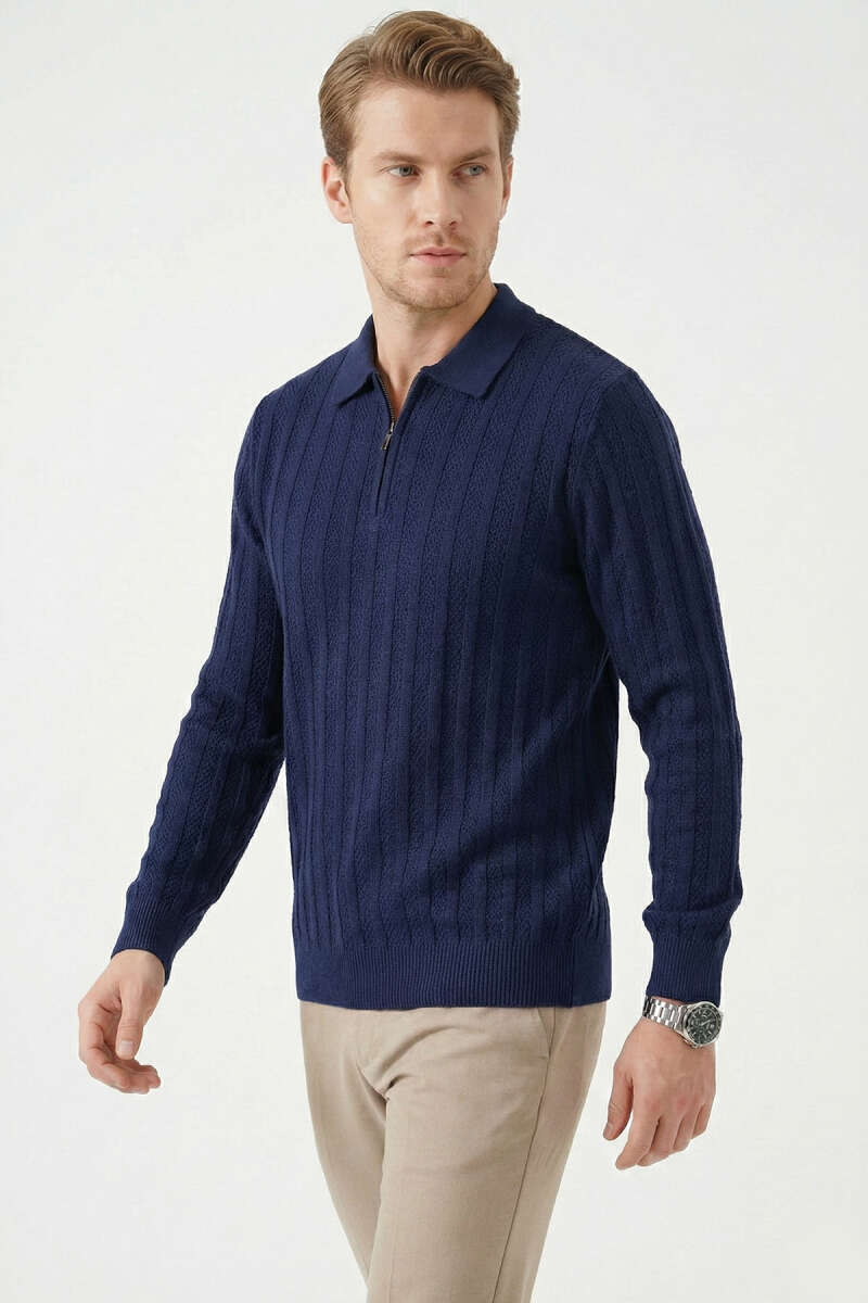 Yarım Fermuar Boğazlı Kazak Lacivert