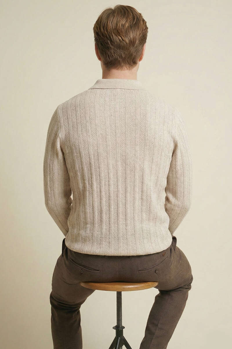 Waffle Kumaş Balıkçı Yaka Erkek Kazak Ekru