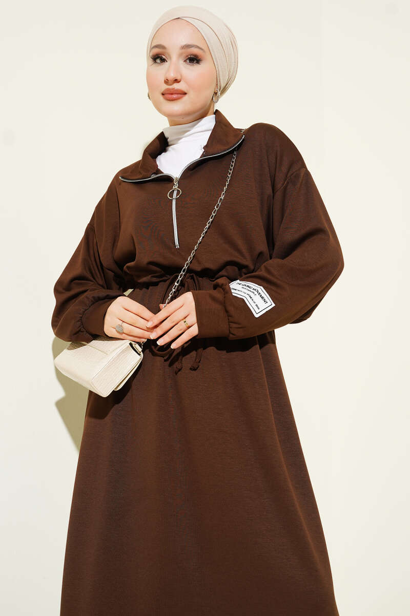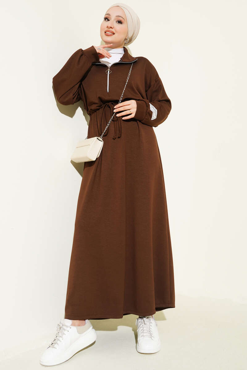 Yarım Fermuarlı Armalı Loyşa Elbise Vizon