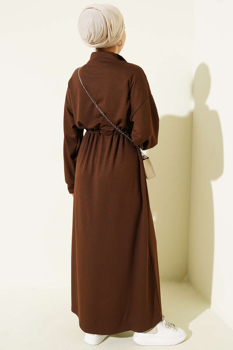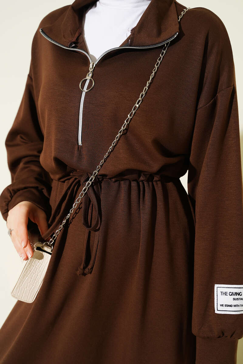 Yarım Fermuarlı Armalı Loyşa Elbise Füme