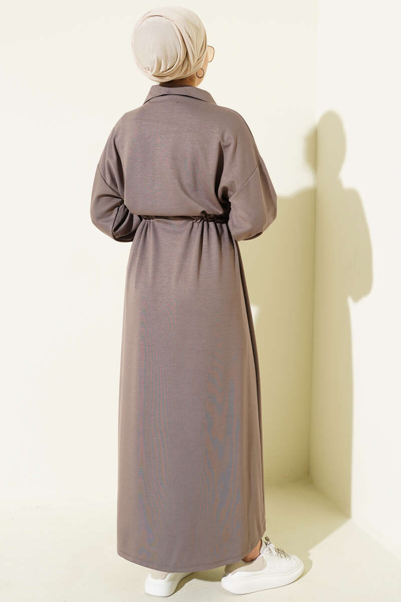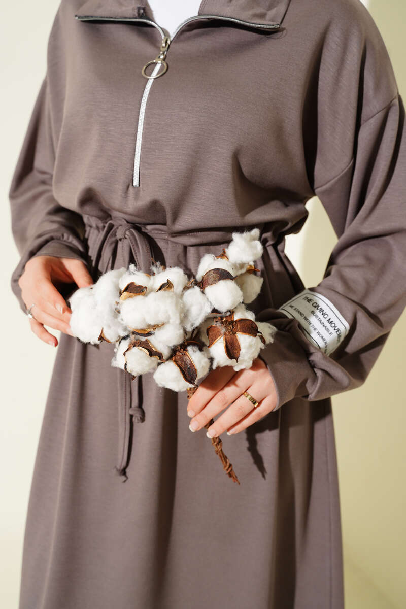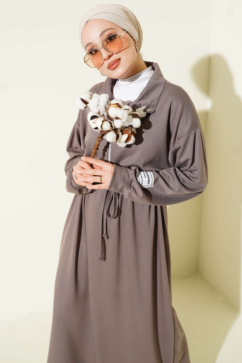 Yarım Fermuarlı Armalı Loyşa Elbise Füme