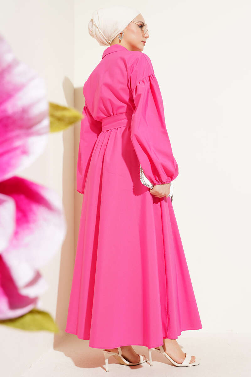 Kuşaklı Dik Fitilli Kaşe Elbise Latte