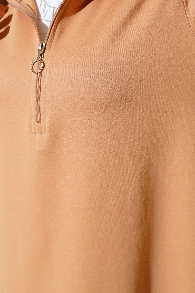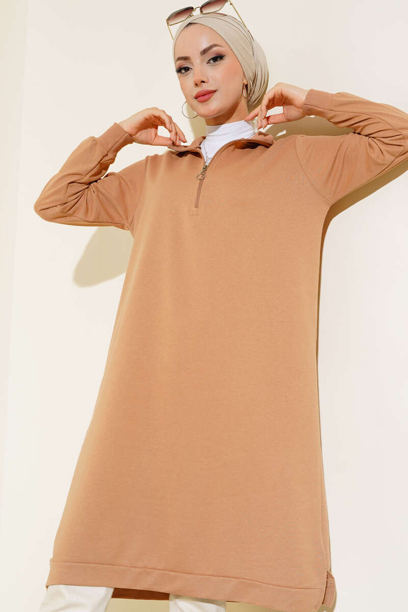 Yarım Fermuarlı Basıc Uzun Tunik Kayrak Grisi