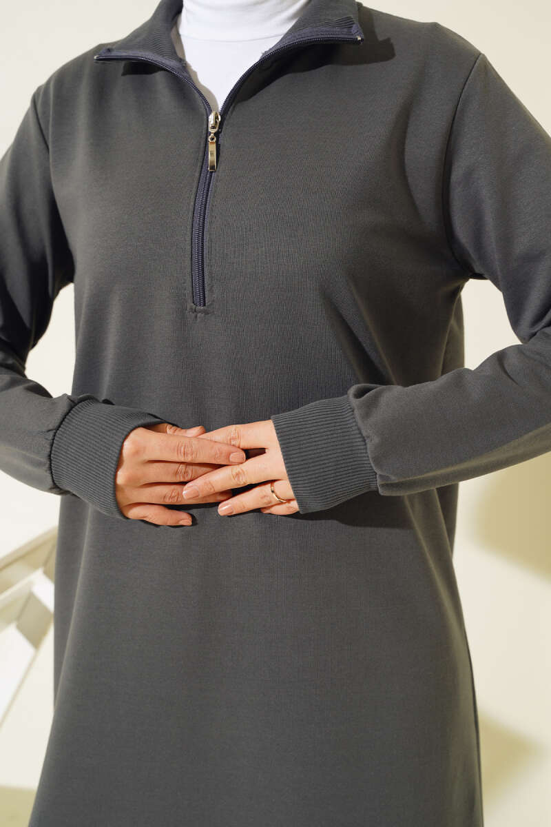 Bel Tünelli Yarım Boğazlı Elbise Zümrüt