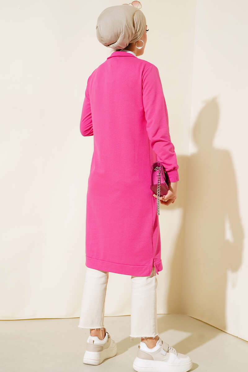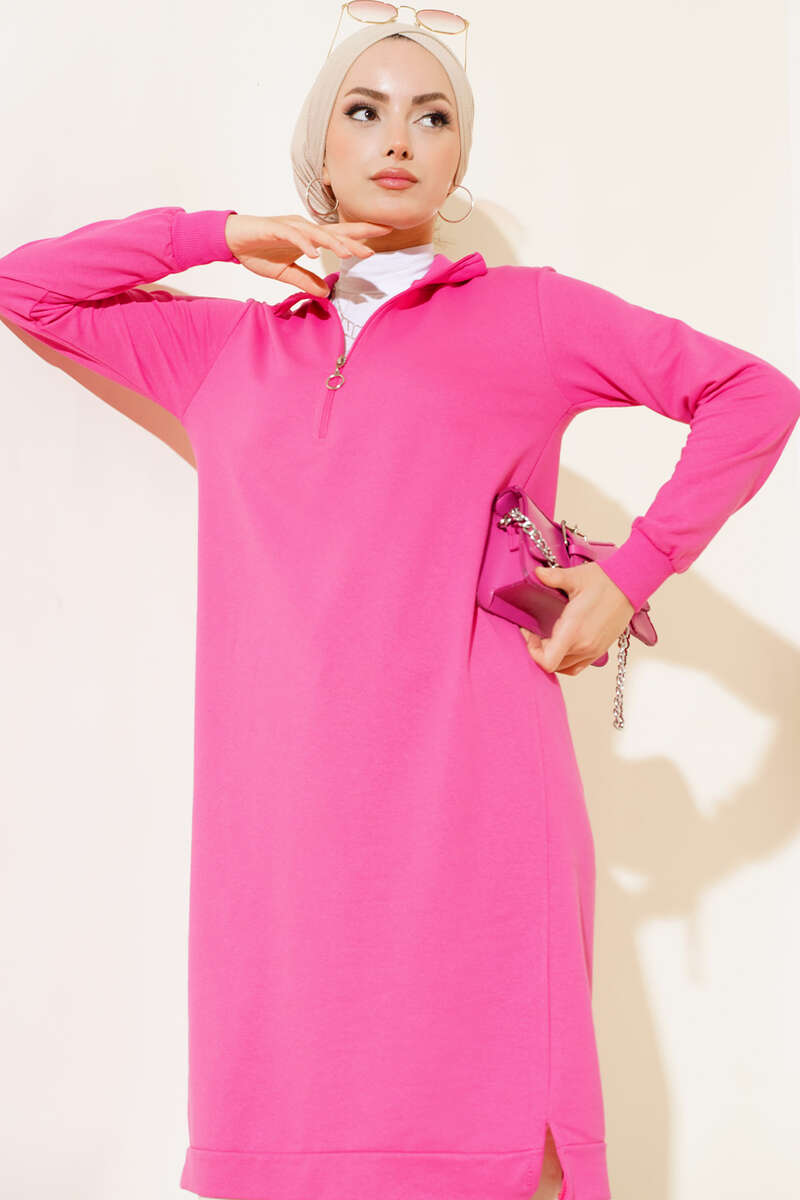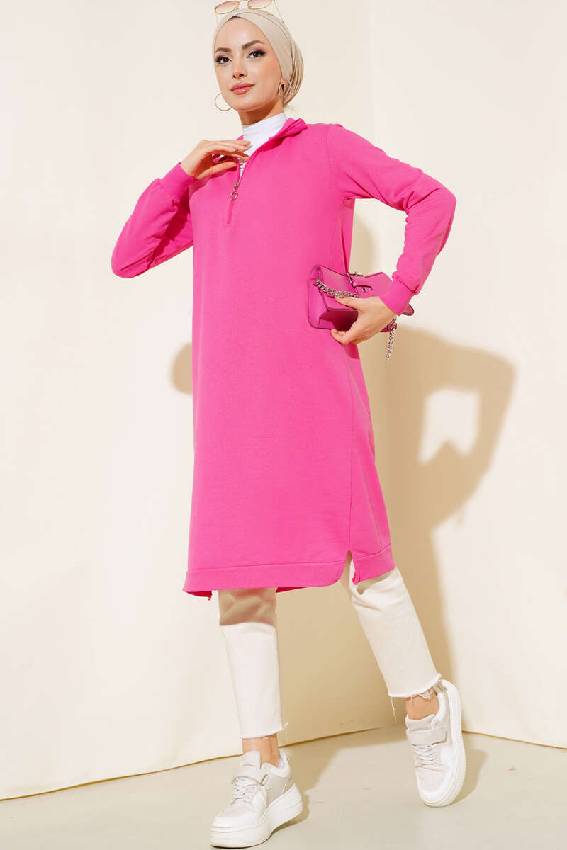 Yarım Fermuarlı Basıc Uzun Tunik Kırmızı