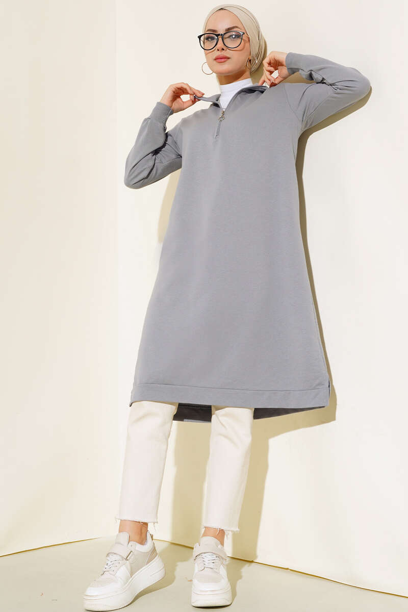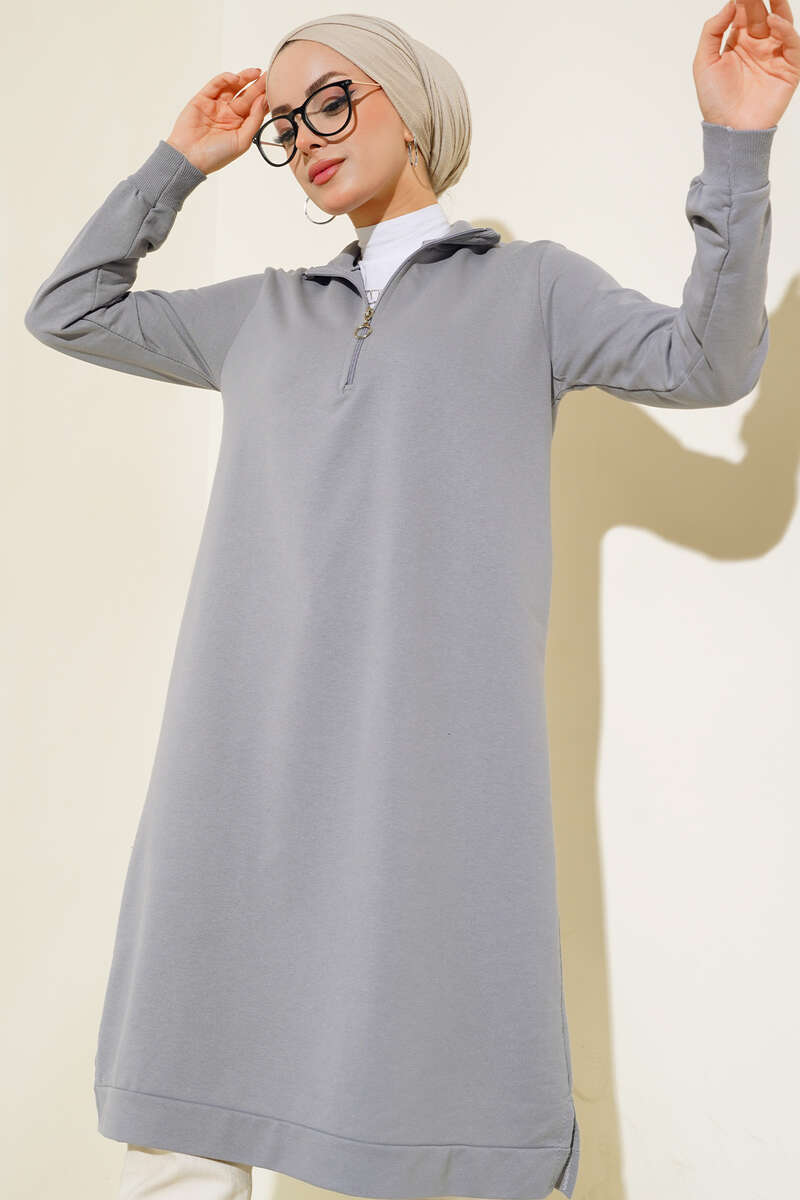 Bel Tünelli Yarım Boğazlı Elbise Füme