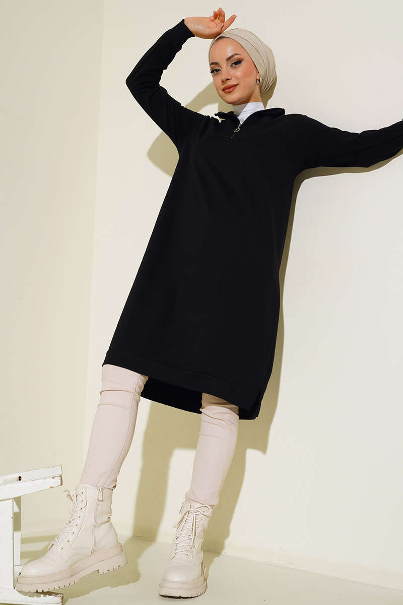 Yarım Fermuarlı Basıc Uzun Tunik Buz Mavisi