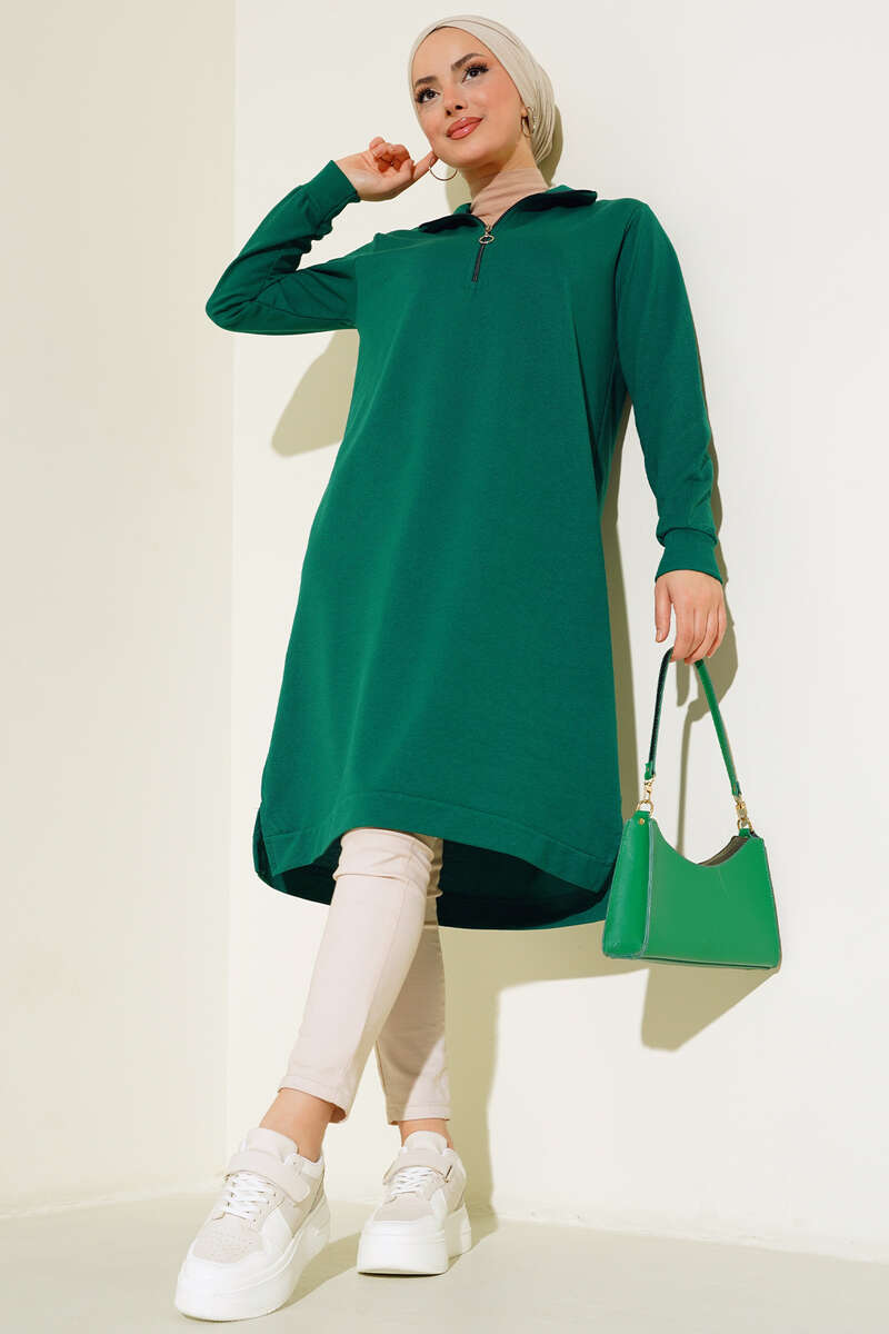 Yarım Fermuarlı Basıc Uzun Tunik Füme