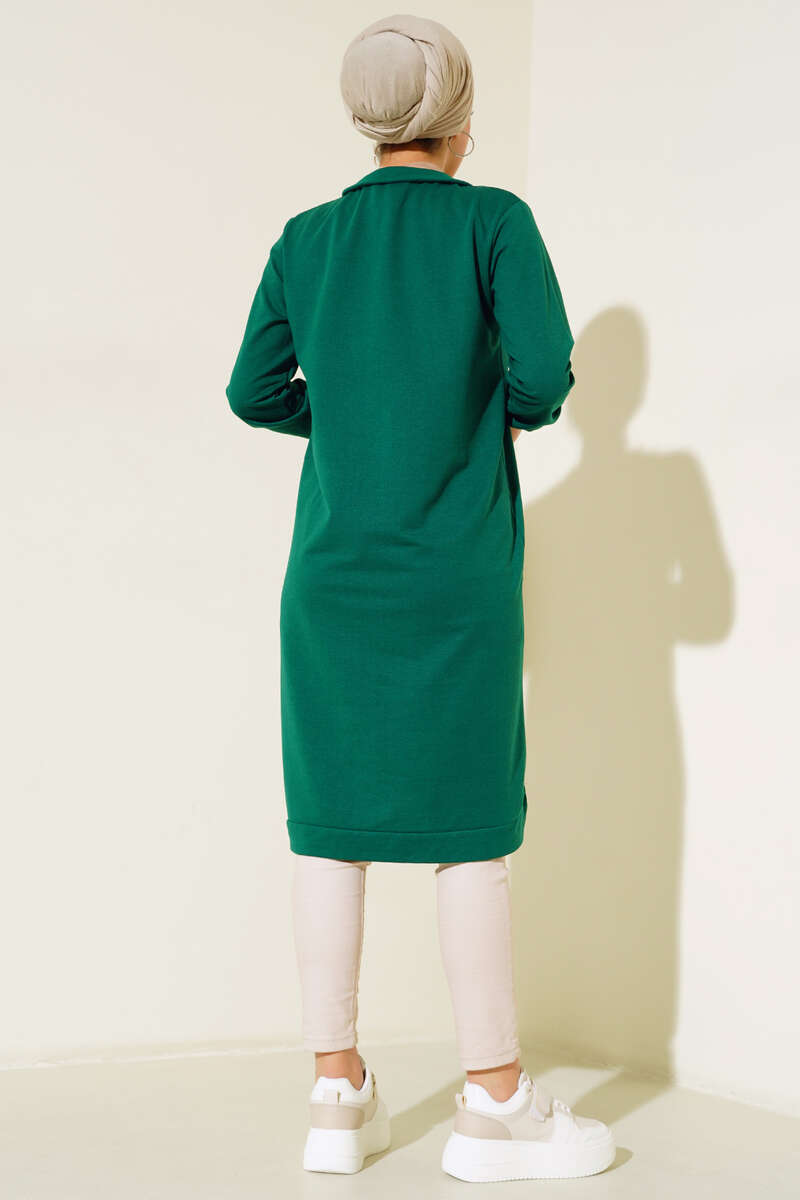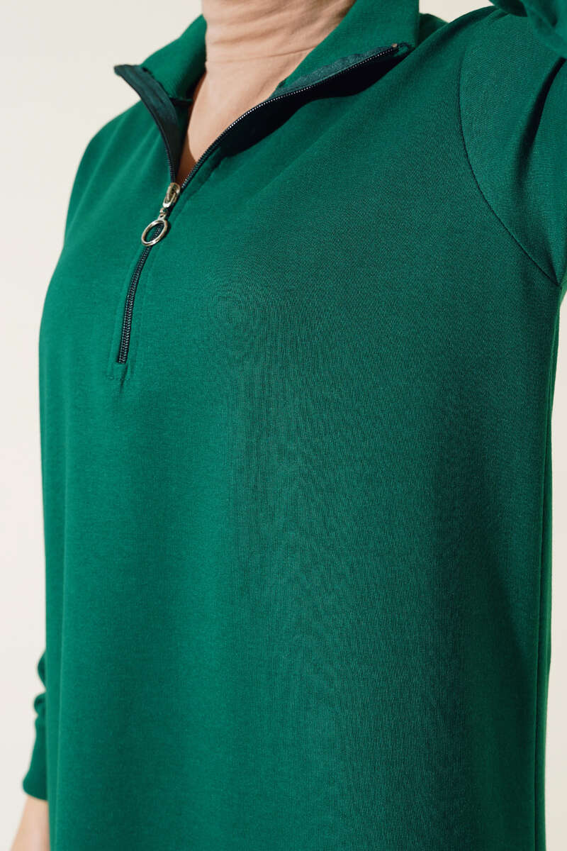 Bel Tünelli Yarım Boğazlı Elbise Zümrüt