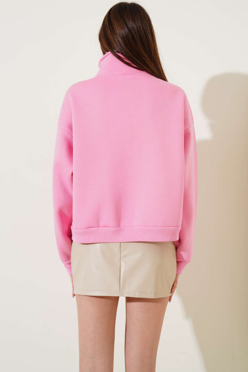 Yarım Fermuarlı Baskılı Sweatshirt Kahve