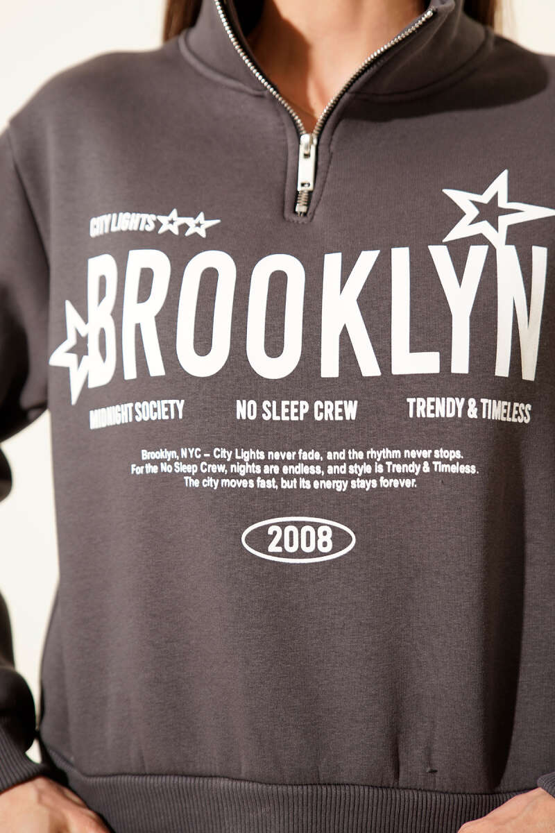 Copenhagen Baskılı Üç İplik Sweatshirt Kahve