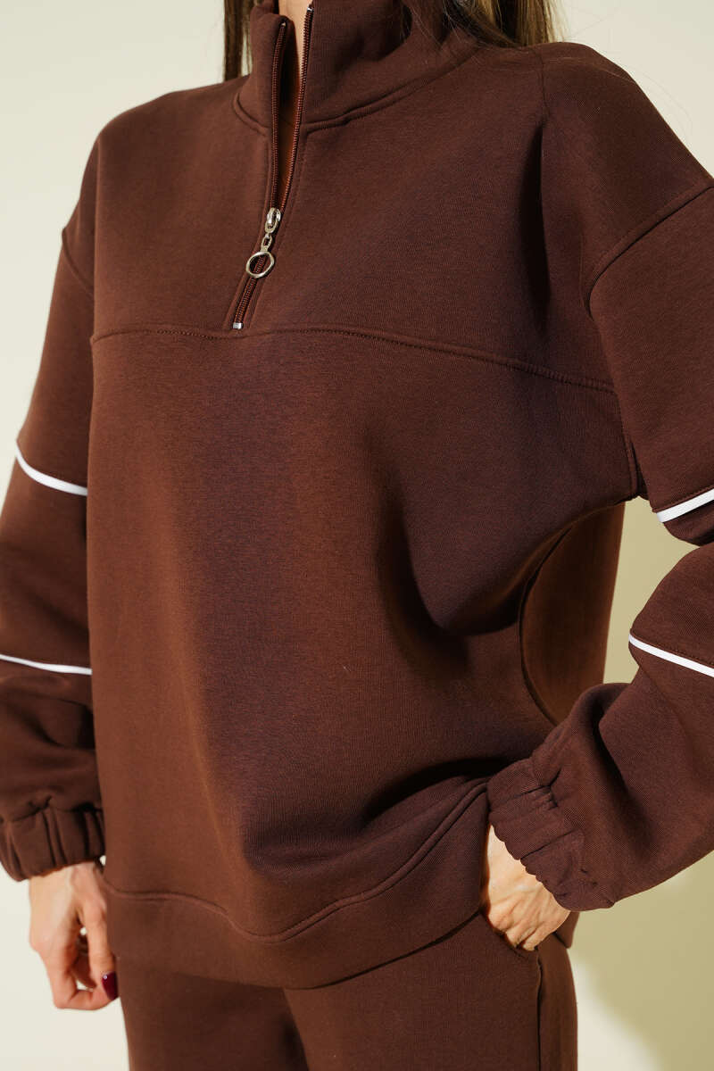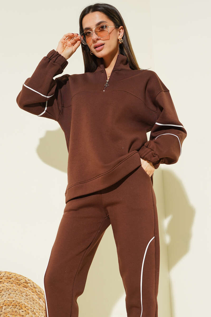 Fermuarlı Bel Lastikli İkili Takım Kahve