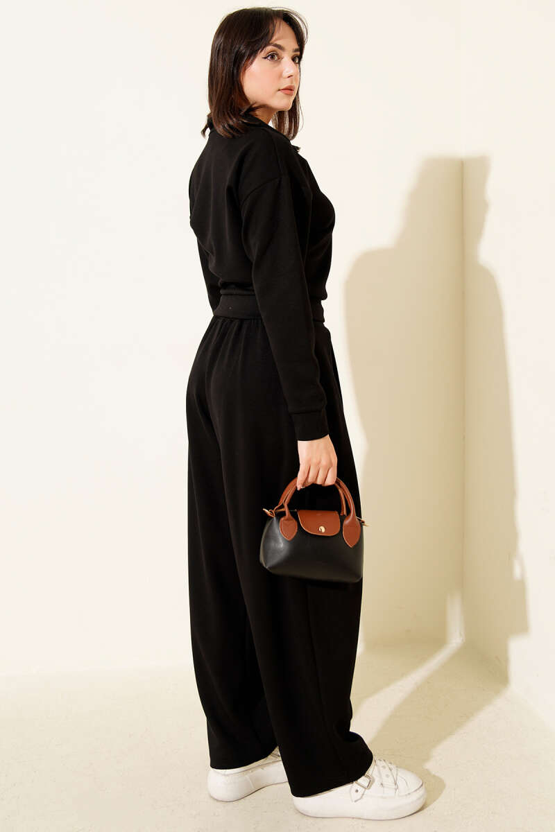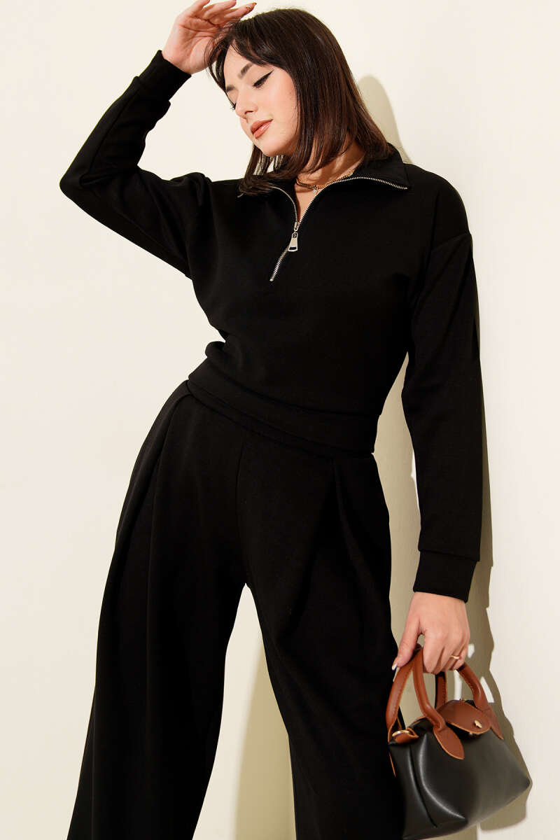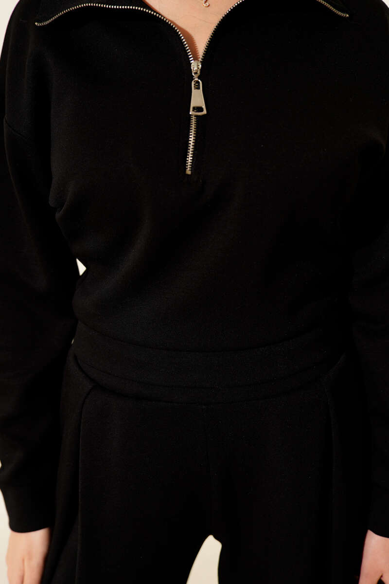 Yarım Fermuarlı Bluzlu Loyşa İkili Takım Kahve