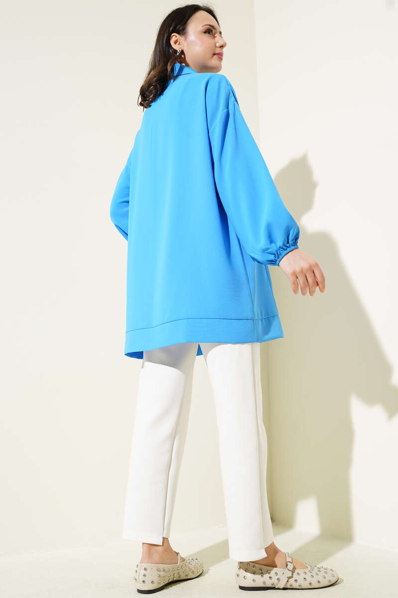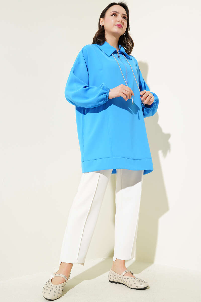 Yarım Fermuarlı Cepli Tunik Mavi
