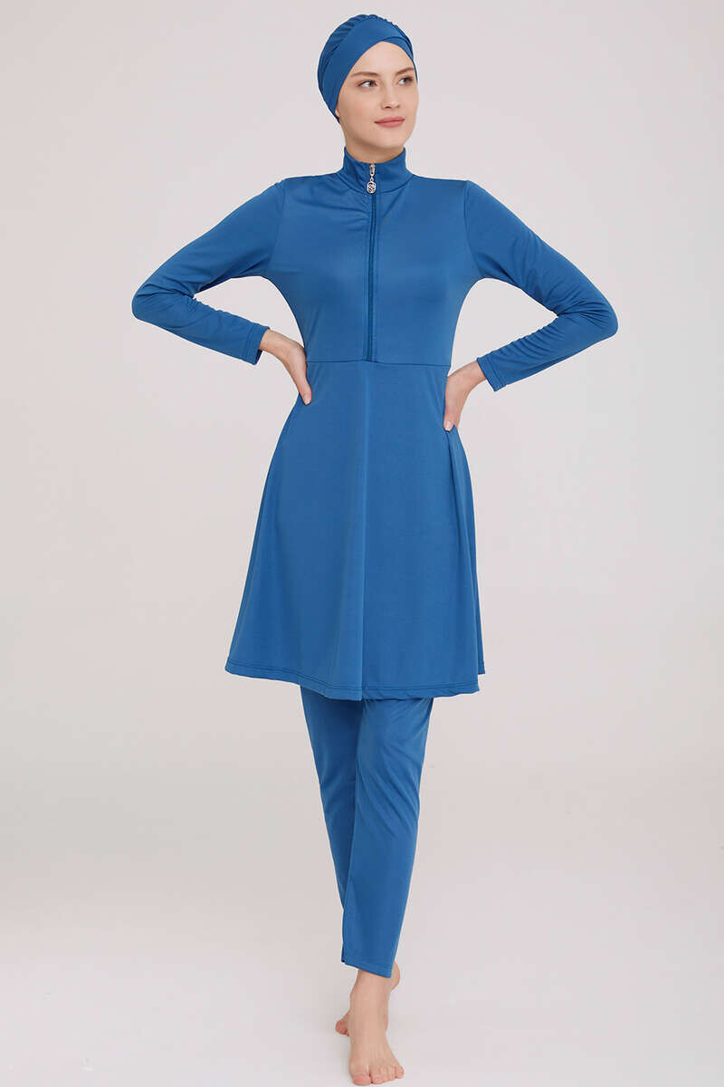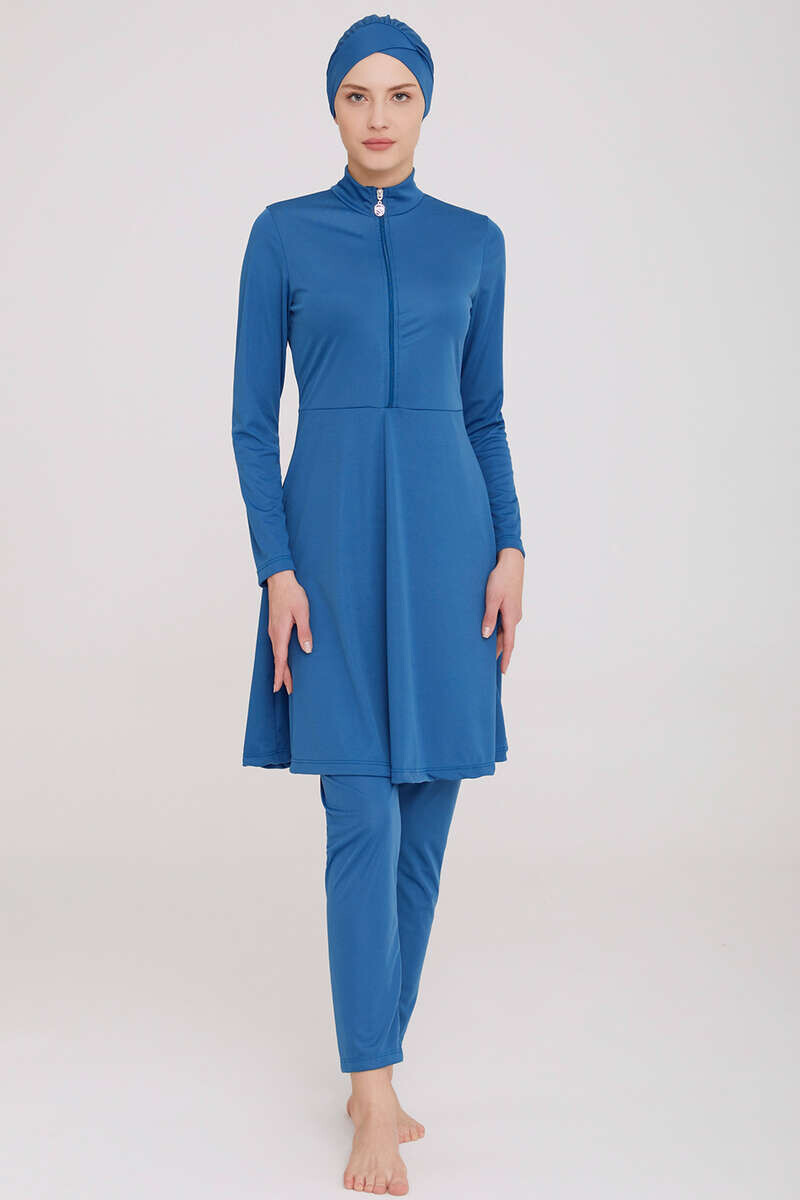 Yarım Fermuarlı Düz Tesettür Mayo Petrol