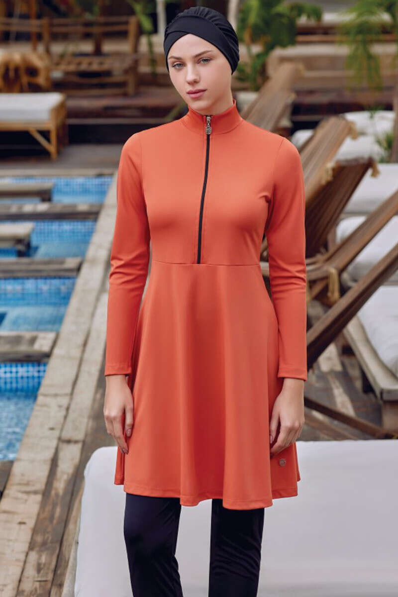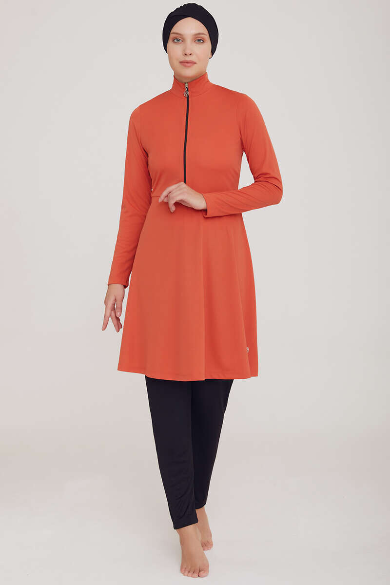 Yarım Fermuarlı Düz Tesettür Mayo Tarçın