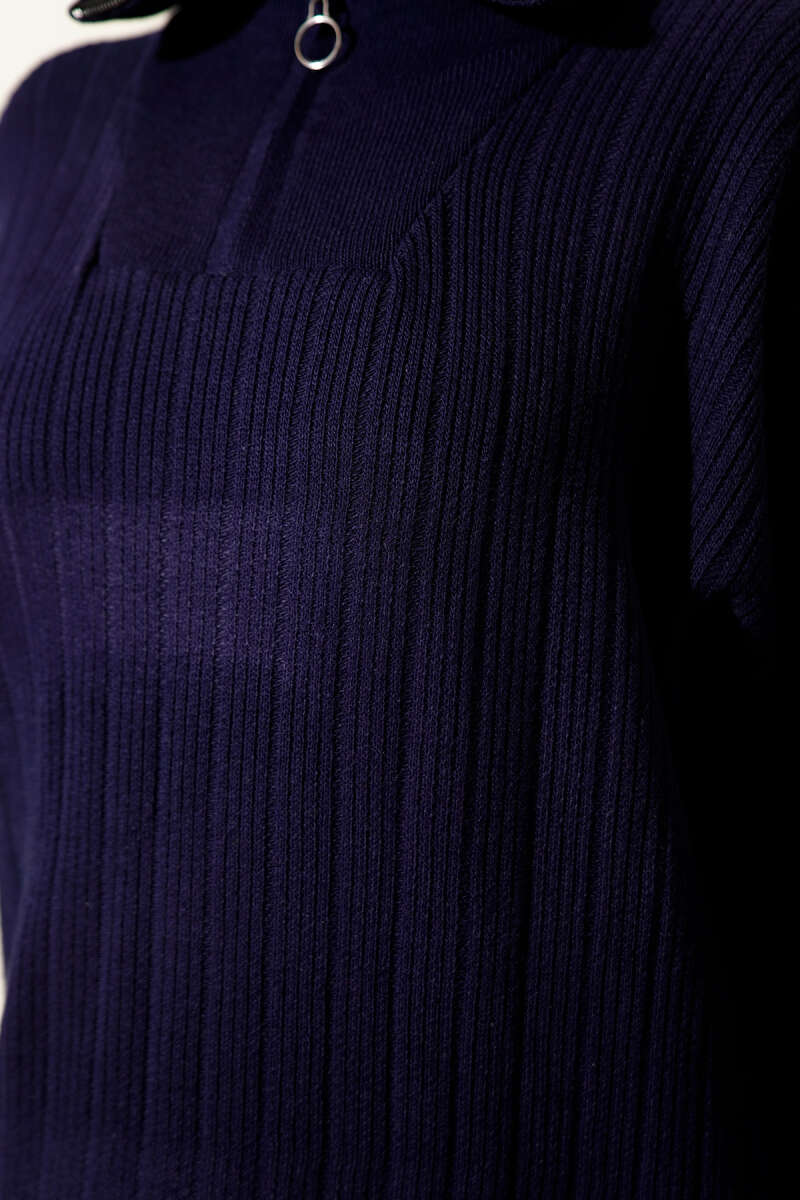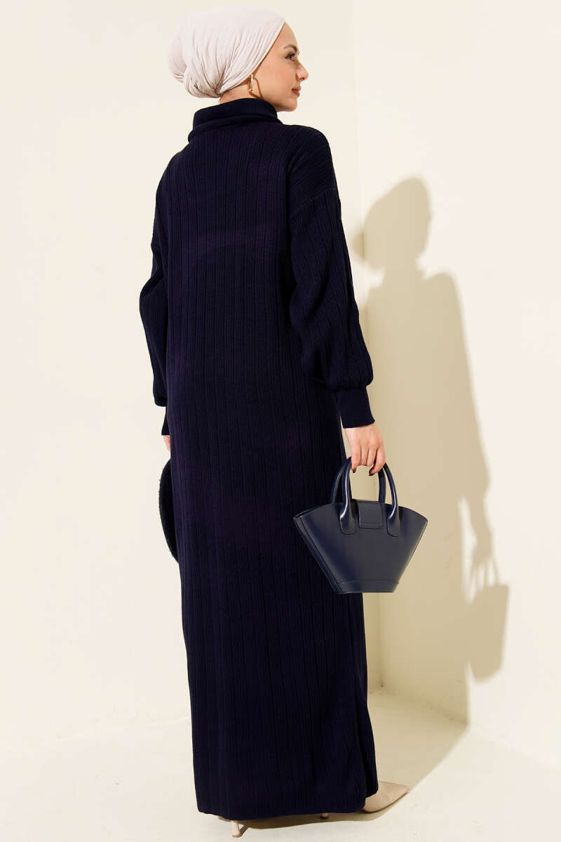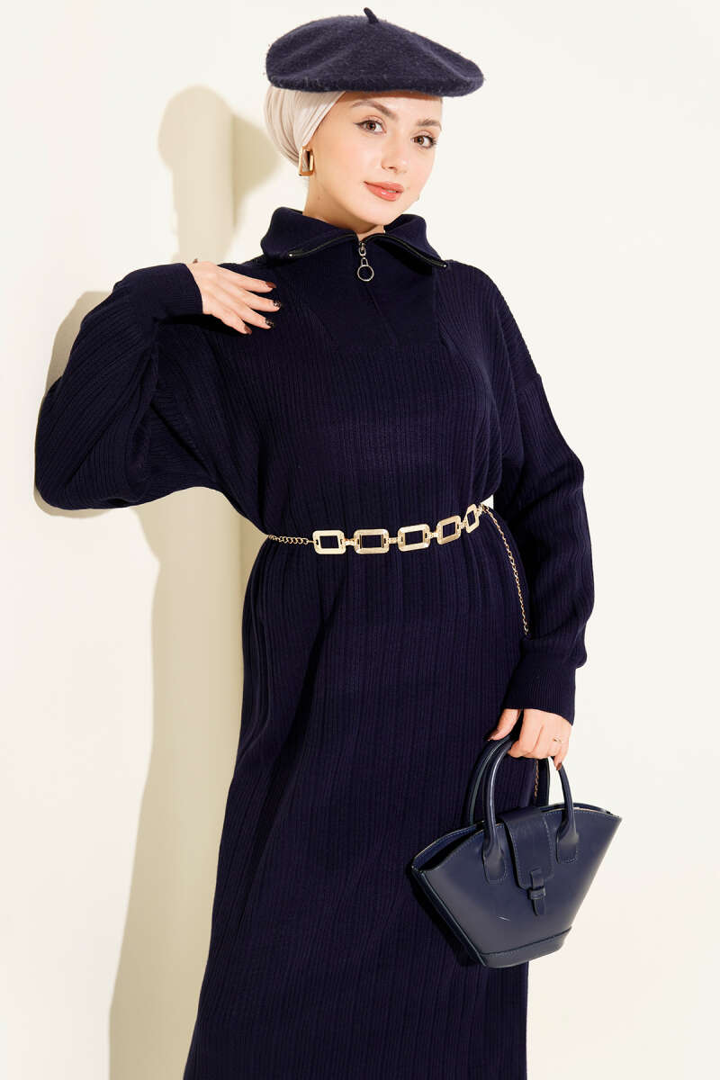 Yarım Fermuarlı Fitili Triko Elbise Taş