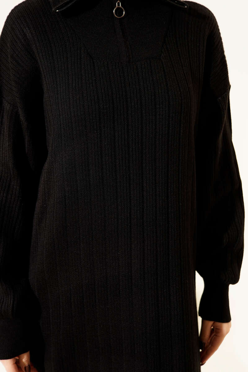 Ribana Görünümlü Triko Tunik Siyah