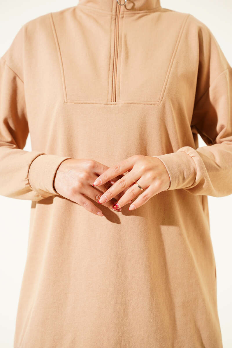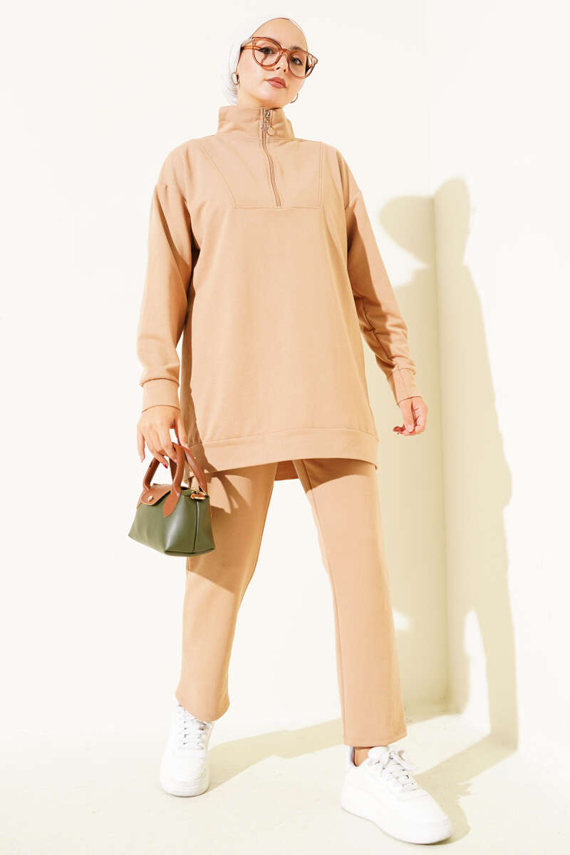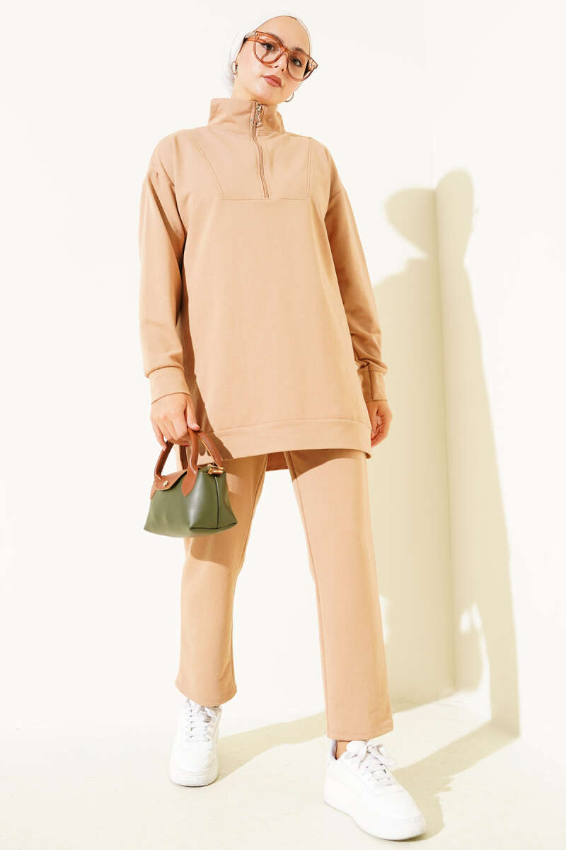 Loyşa Yarım Fermuar Detaylı İkili Takım Bej