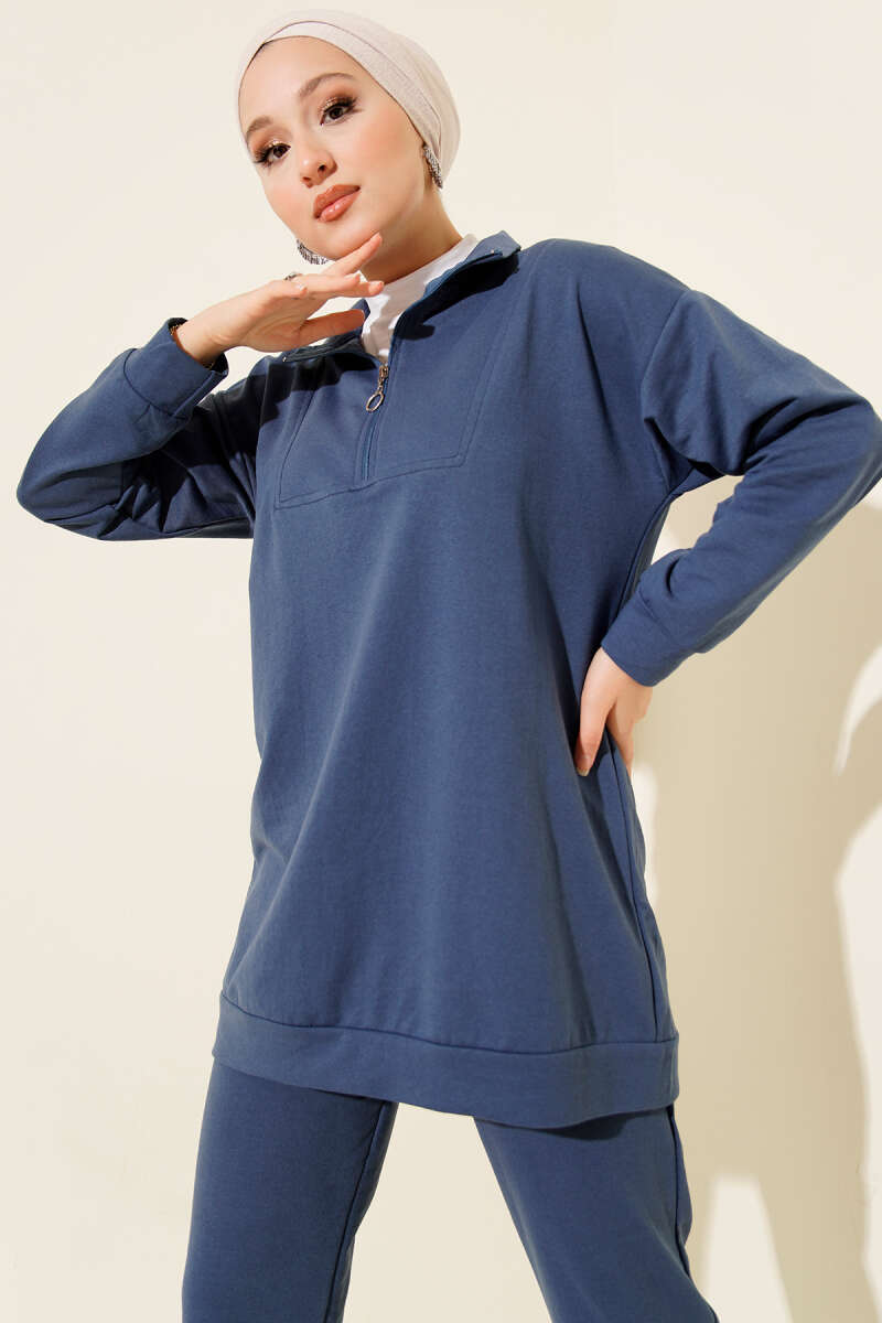 Yarım Fermuarlı İki İpli İkili Takım Mavi