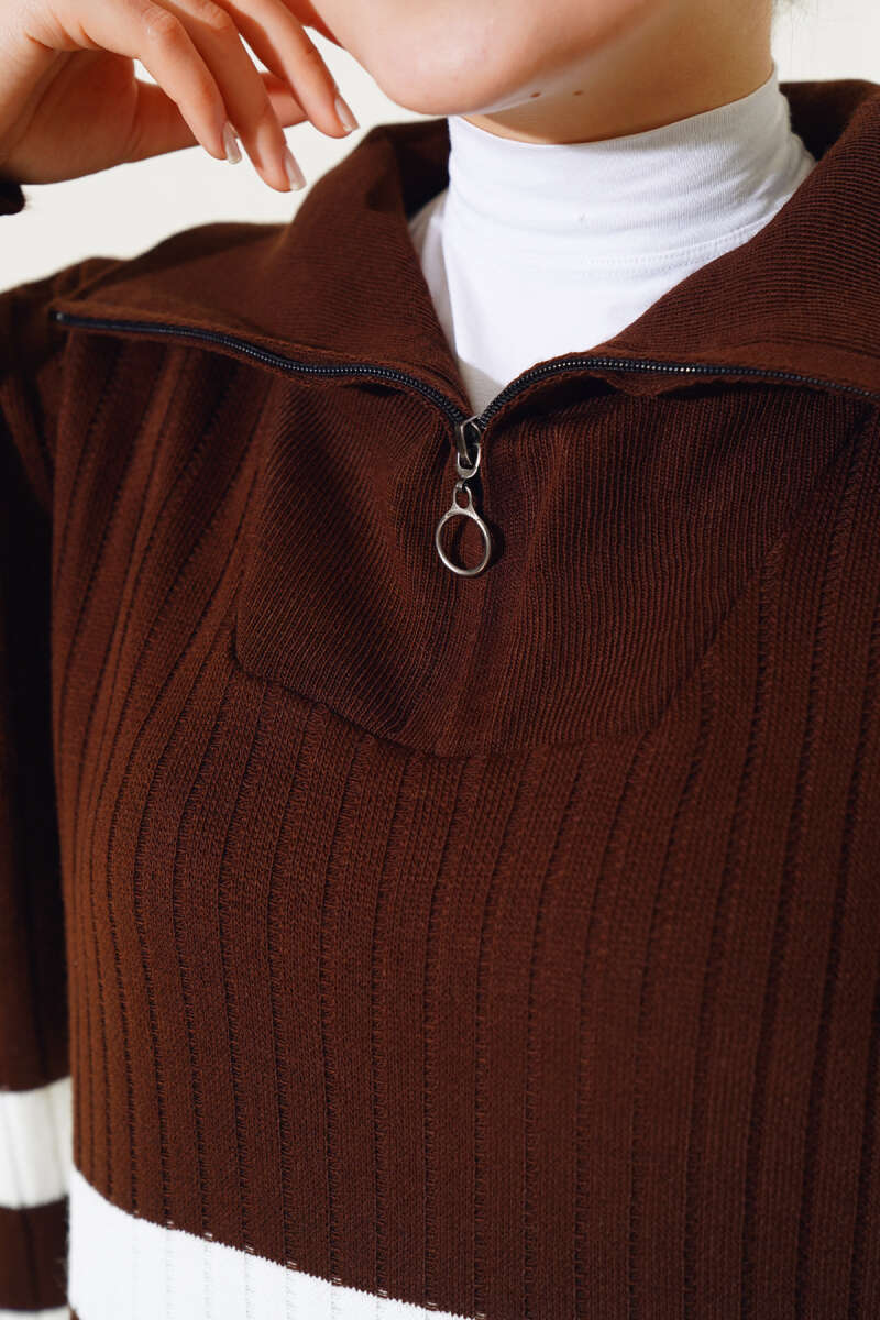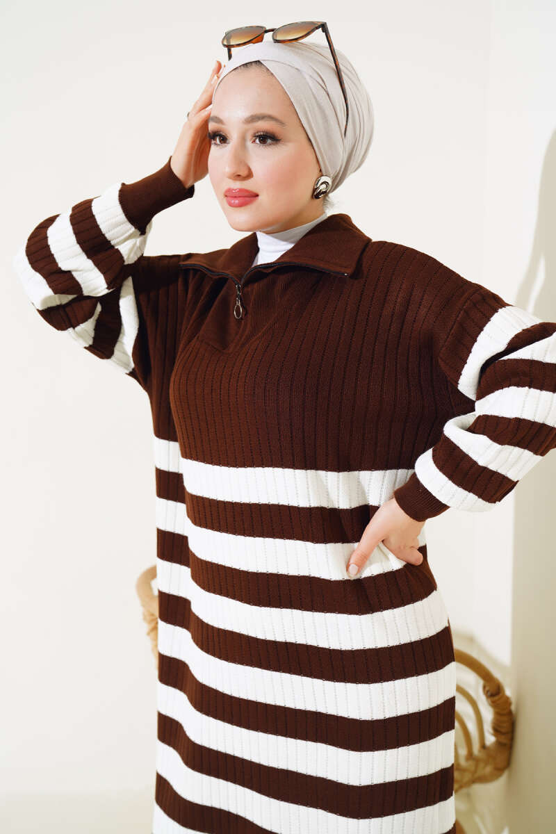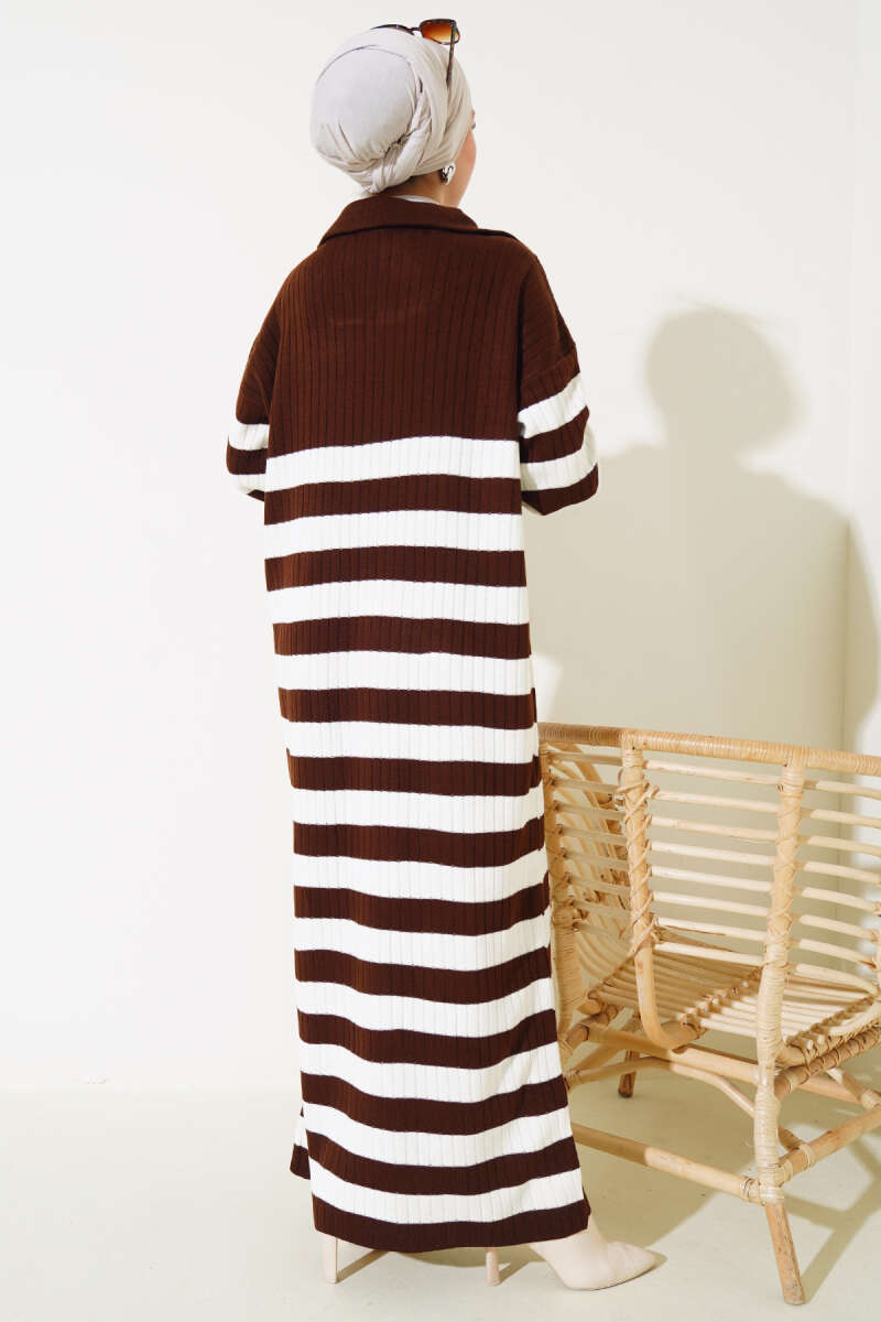 Scuba Pens Detaylı Kemerli Elbise Kahve