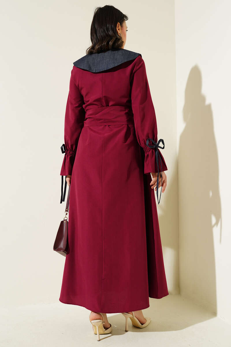 İnci Pelerinli Abiye Elbise Bordo