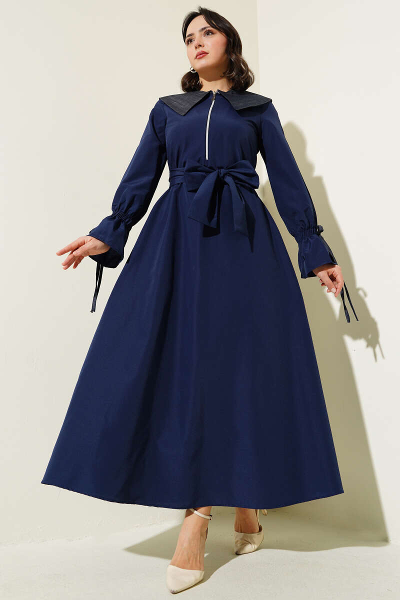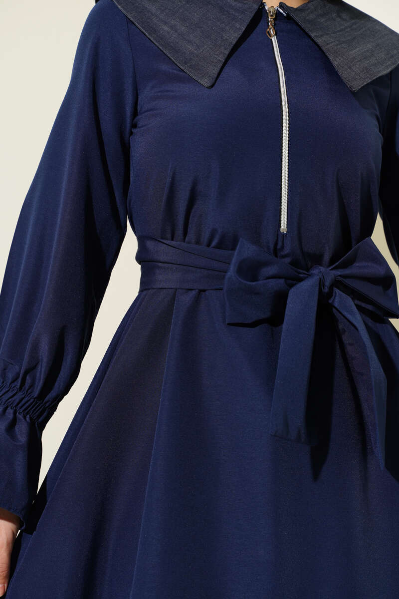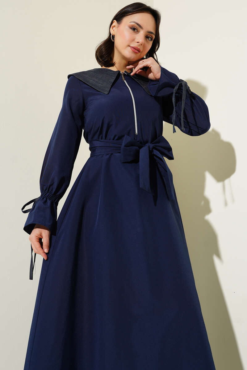 Metal Düğme Süslemeli Bağcıklı Elbise Vizon