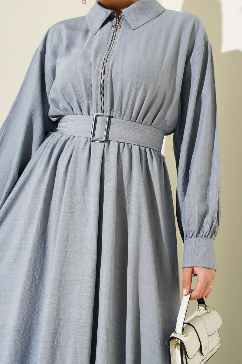 Kolları Fiyonk Detaylı Selanik Elbise Gri