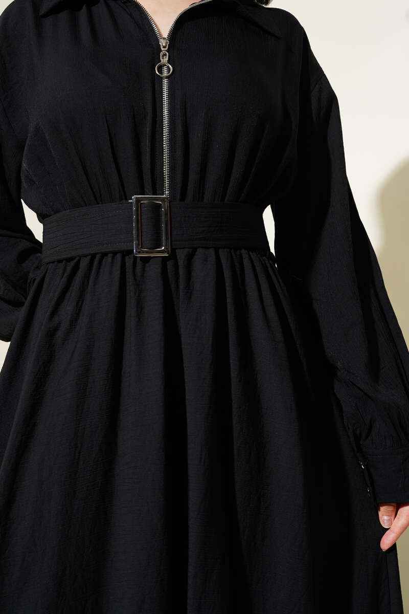 İp Kuşaklı Ajurlu Triko Elbise Siyah