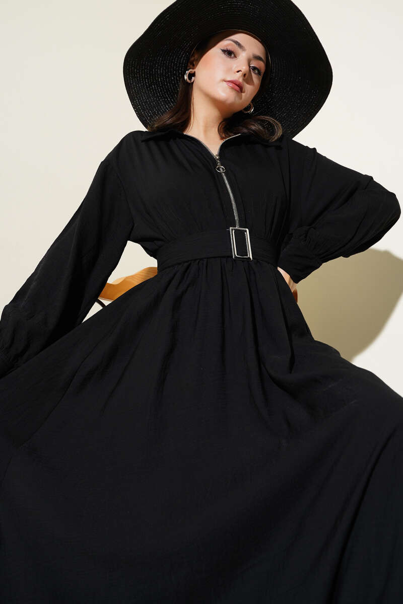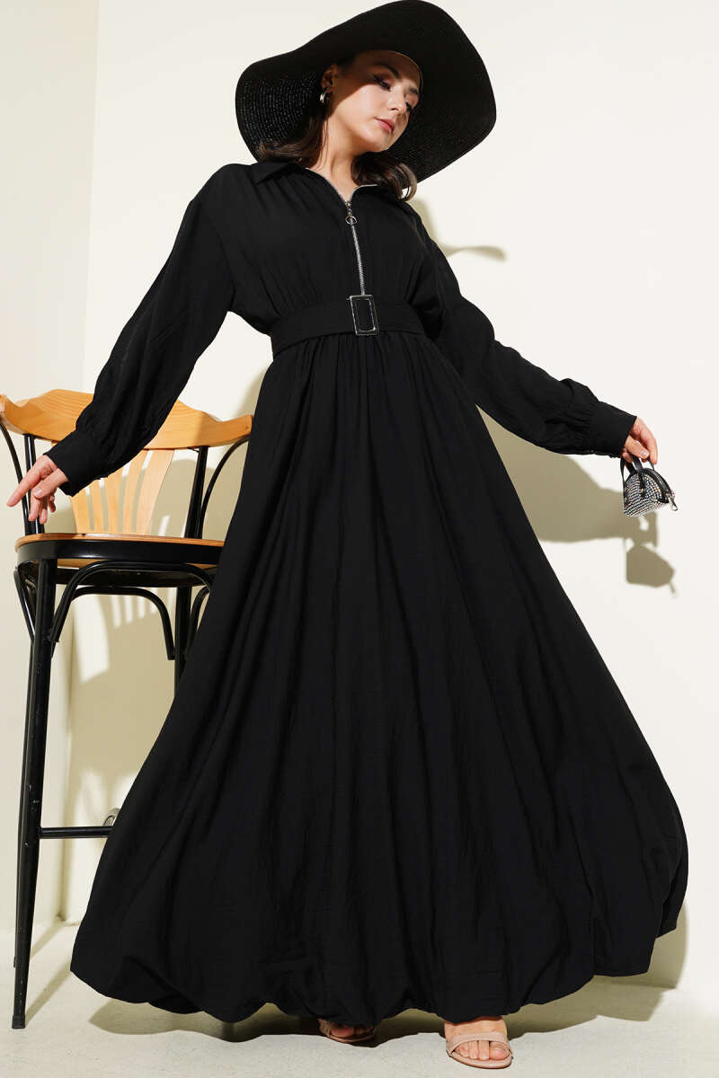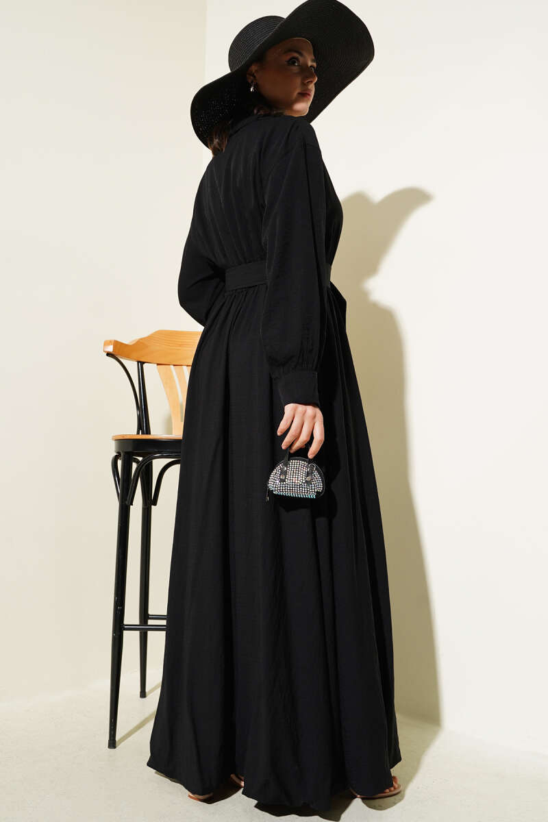 Bel Taşlı Pelerinli Abiye Elbise Siyah