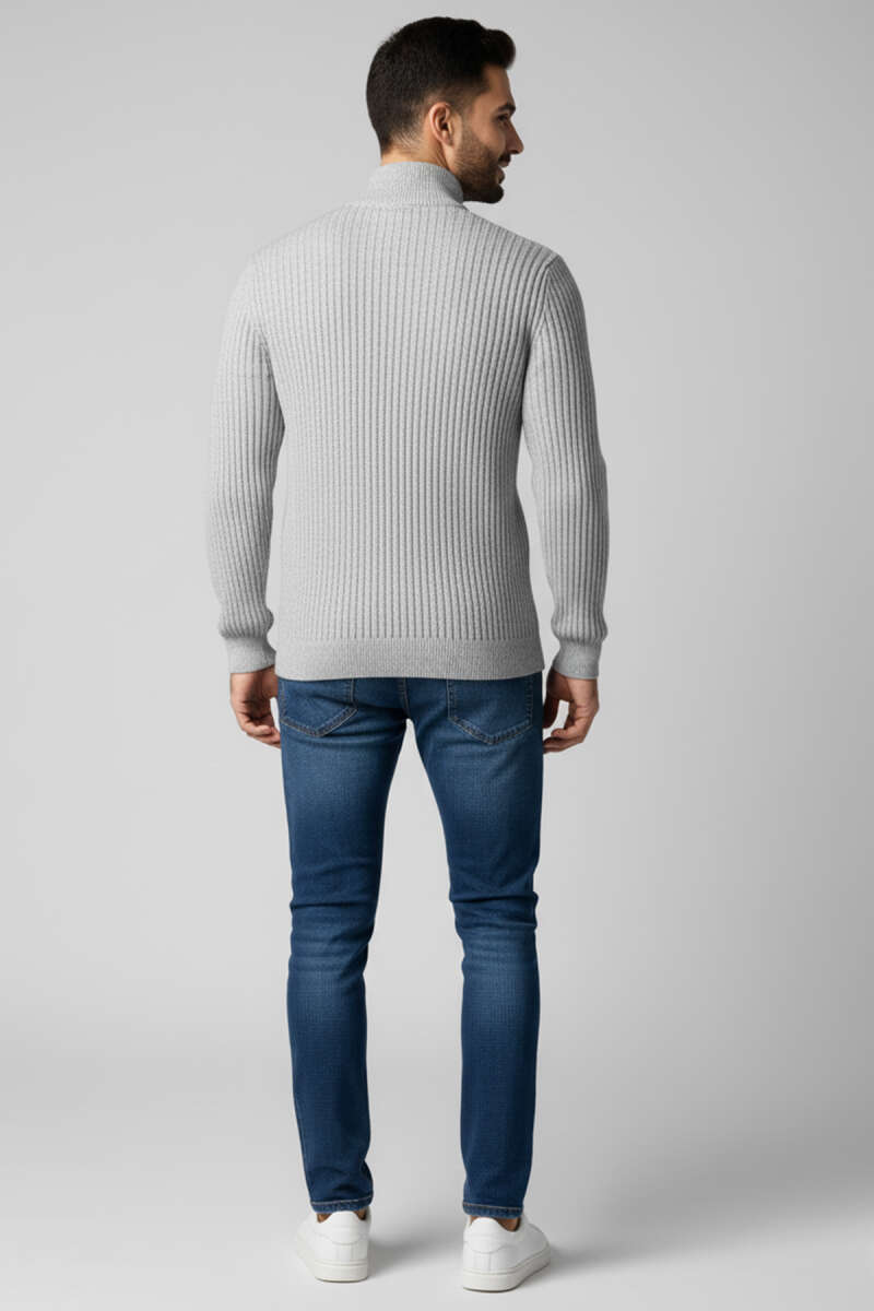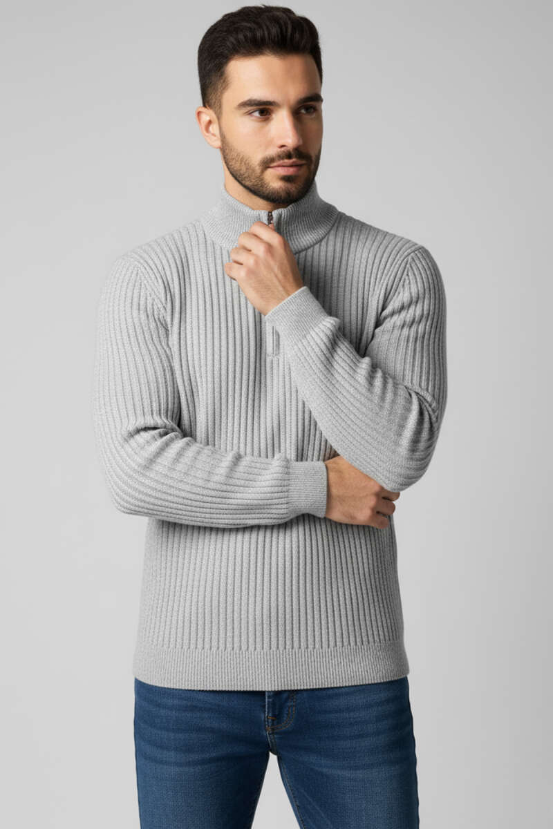 Yarım Fermuarlı Örgü Erkek Triko Kazak Füme