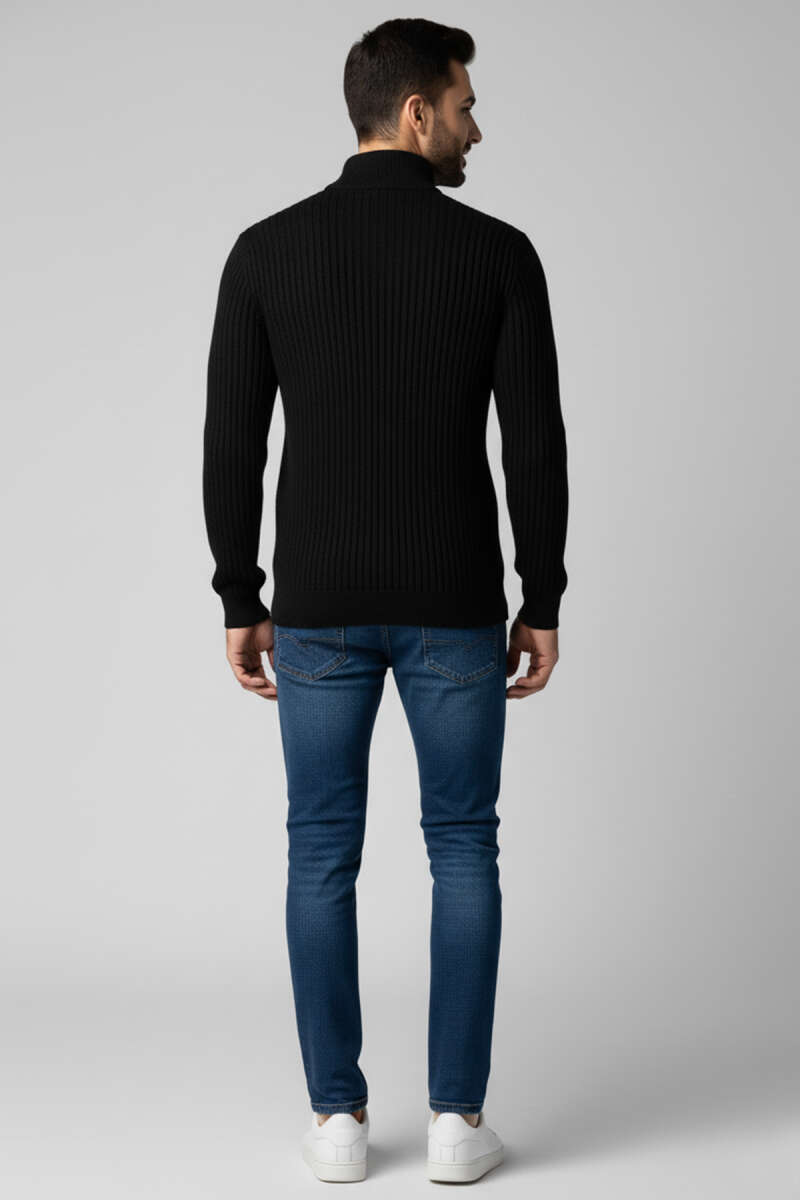 Yarım Fermuarlı Örgü Erkek Triko Kazak Siyah