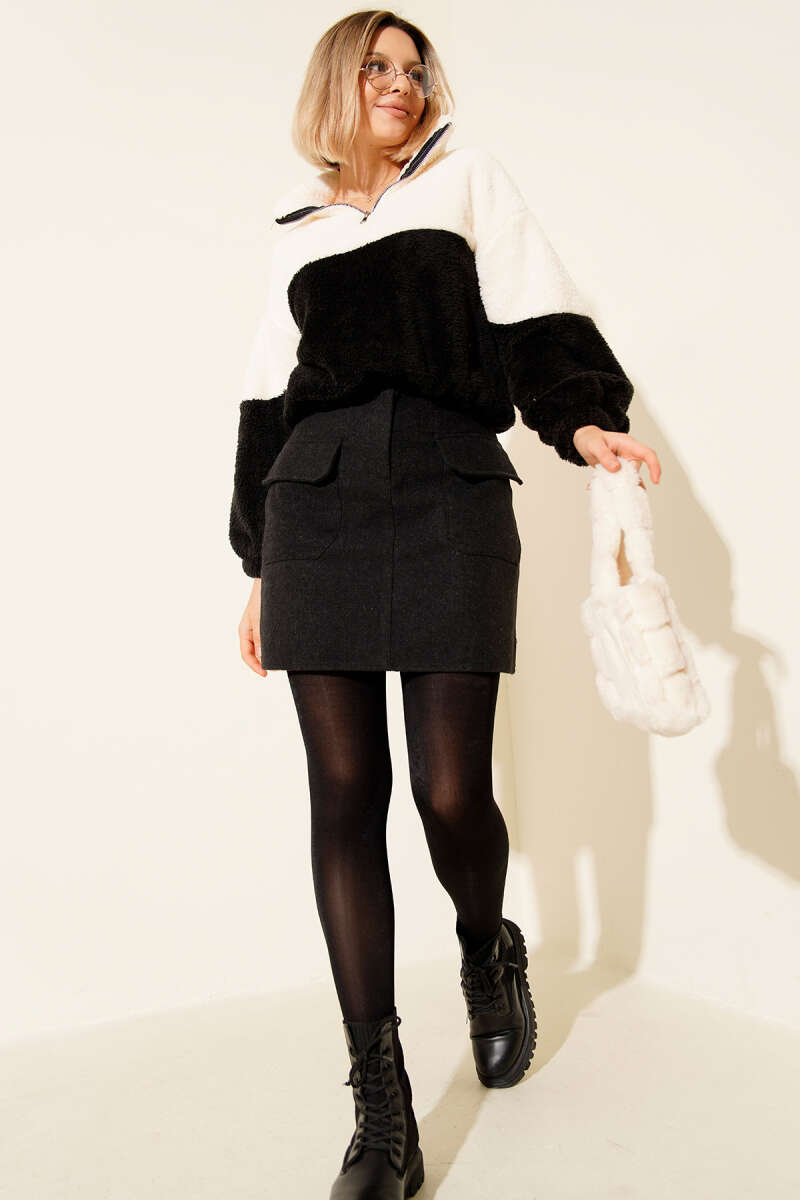 Su Yolu Kapitone Fermuarlı Mont Siyah