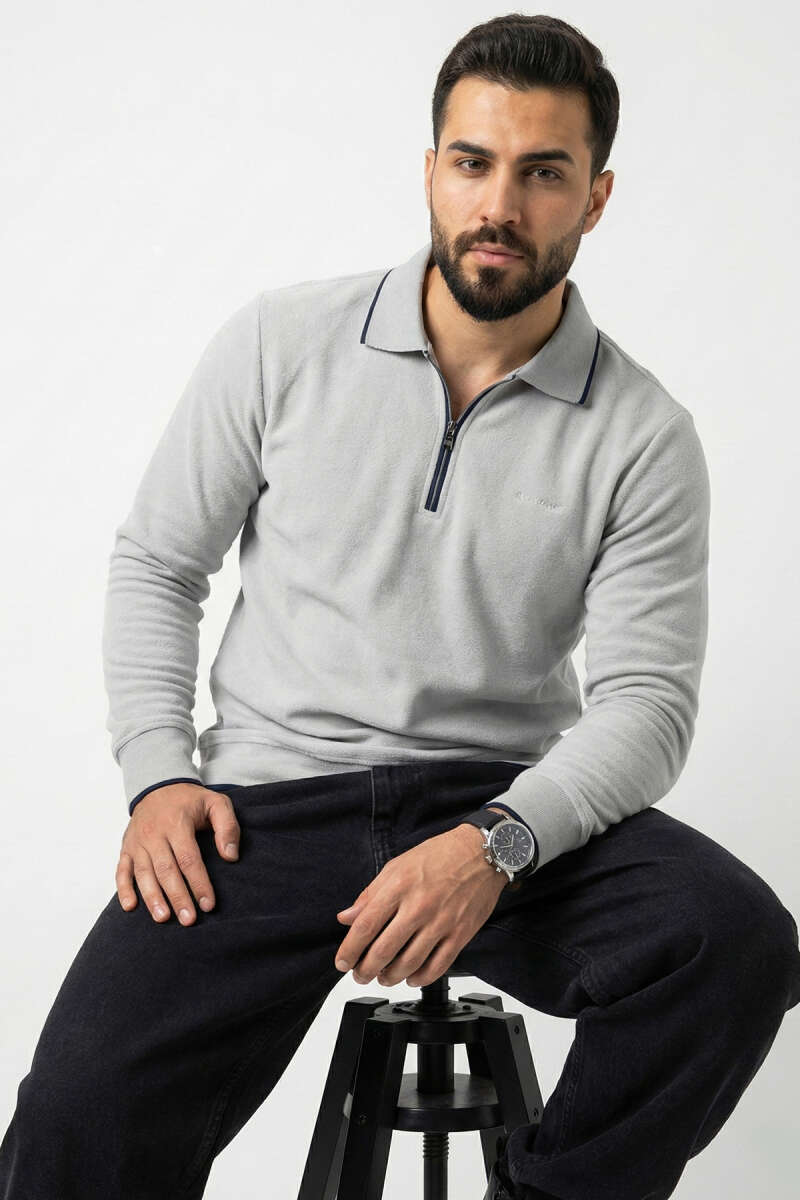 Yarım Fermuarlı Ribanalı Erkek Sweatshirt Gri
